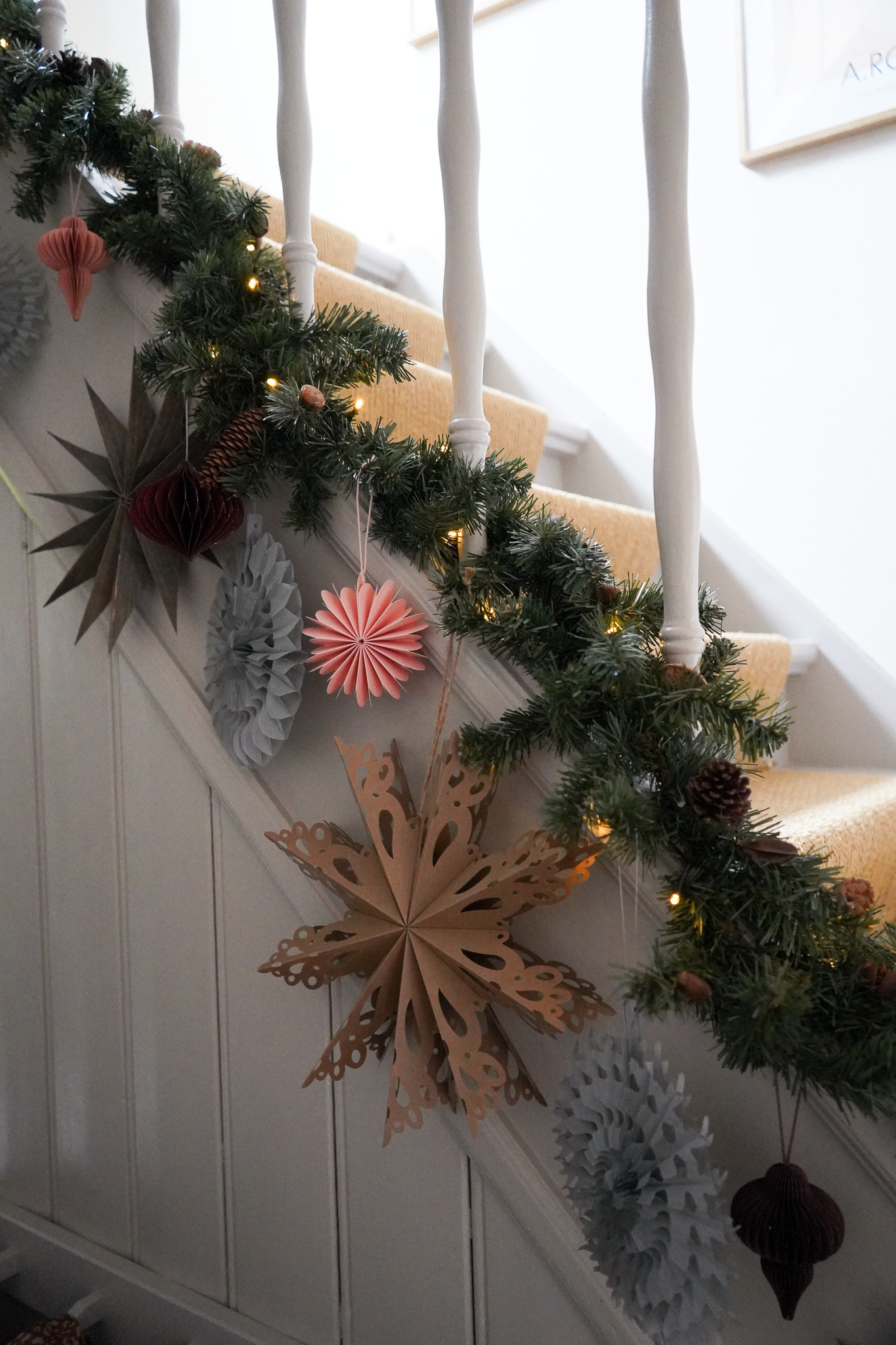 Die Treppe ist trotzdem nur das Warm-up, denn der Baum kommt später ja auch noch ins Wohnzimmer und vor der Tür leuchtet ein Herrnhuter Stern – den hat letztes Jahr allerdings ein Schneesturm in seine Einzelteile zerlegt. Bislang hatten weder Flori noch ich Lust, das Ding wieder zusammenzubauen.