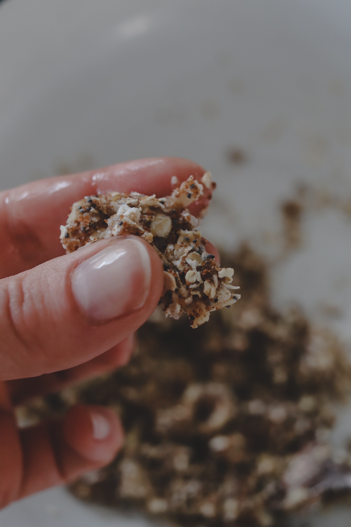 Für die Streusel alle anderen Zutaten in einer großen Schüssel mischen, bis eine krümelige Teig-Masse entsteht. Abschmecken: lecker? Falls euch noch mehr Süße fehlt, dann gerne mehr Kokosblütenzucker verwenden. Ich mag bei Äpfeln und Birne außerdem eine Prise Zimt.