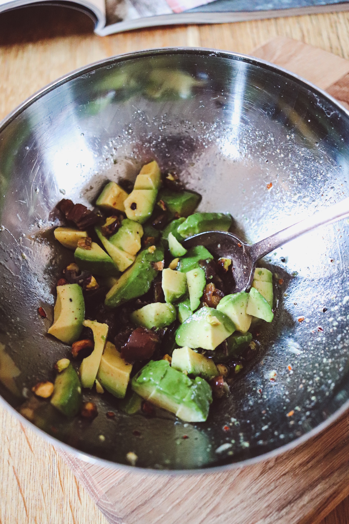 [Werbung] Datteln im Salat? Ja, denn das schmeckt fantastisch! Vor allem dann, wenn die süße Frucht mit einer cremigen Avocado, nussigen Pistazien und der Säure eines Zitronen-Chili-Dressings kombiniert wird.