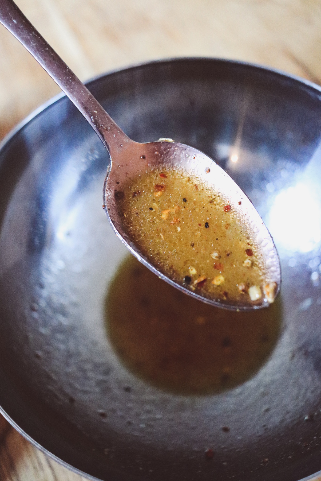 Statt Essig wird bei diesem Rezept nur Zitronensaft verwendet. Den besonderen Geschmack bringt eine orientalische Gewürzmischung, wie zum Beispiel Baharat oder der Oriental Allrounder von Just Spices. Diese bestehen zumeist aus Zutaten wie Korianderpulver, Zimt, Kümmel, Nelken, Ingwer, Muskatnuss und Kardamom. Wer diese Gewürze zum Keksebacken bereits zu Hause im Regal stehen hat, kann die Mische zu jeweils 1 Teil selber herstellen.