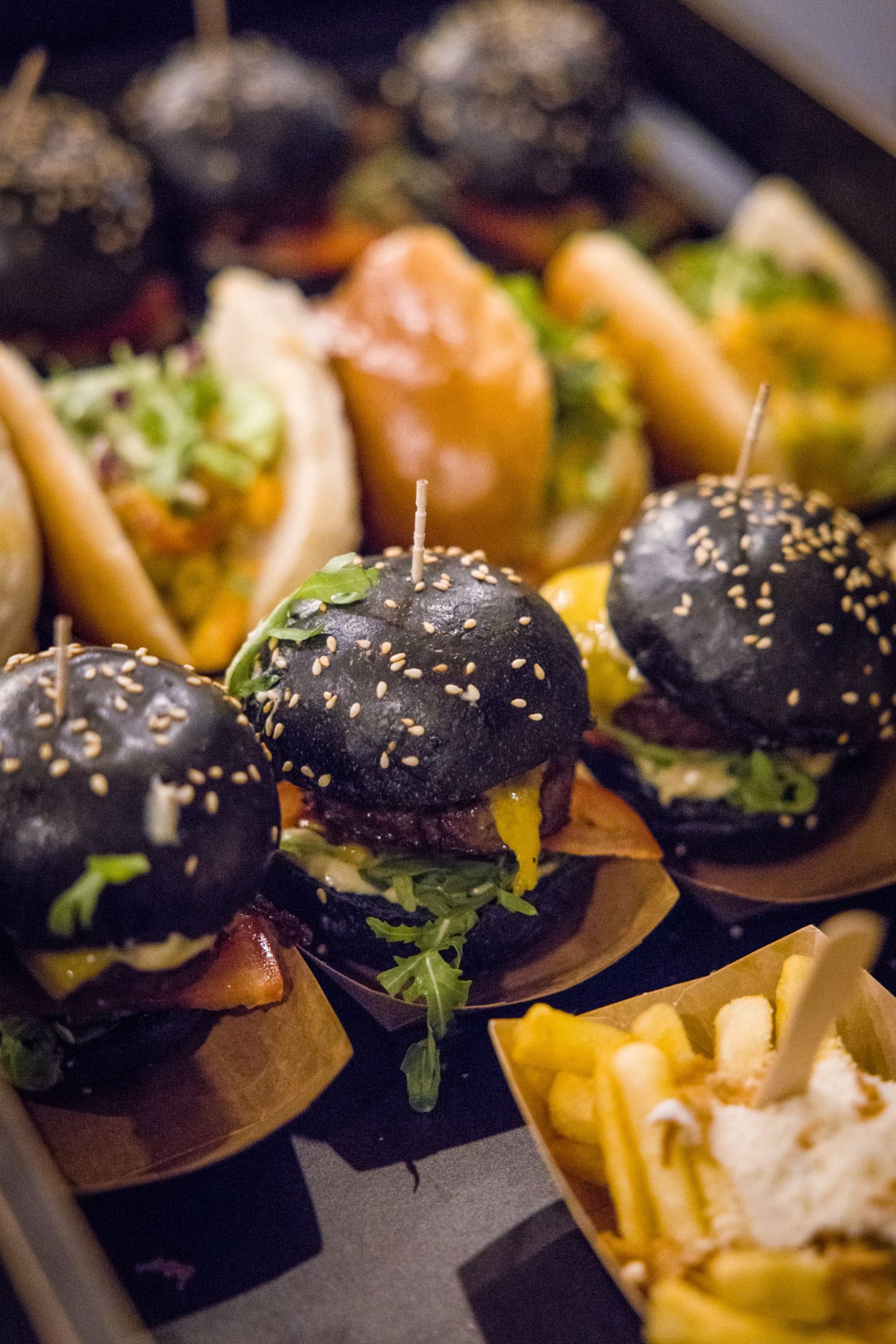 Statt uns als Konkurrentinnen zu sehen, bewerfen wir uns also gegenseitig mit Glitter und freuen uns von ganzem Herzen über den Erfolg der anderen. Marlenes Buch „Und jetzt? Fragen an das Leben mit 40 Antworten für immer“ ist diese Woche erschienen und auch als Hörbuch erhältlich, mein drittes Buch „Mohn & Regen“ kam letzte Woche auf den Markt. Mit Unterstützung von Flori und der Factory Kitchen am Görlitzer Park konnten wir endlich die Korken knallen lassen. Es gab ein kalifornisches Buffet mit Austern und Cheddarbrot, Truffle Fries, Crab Roll, Mini Burger und California Rolls: