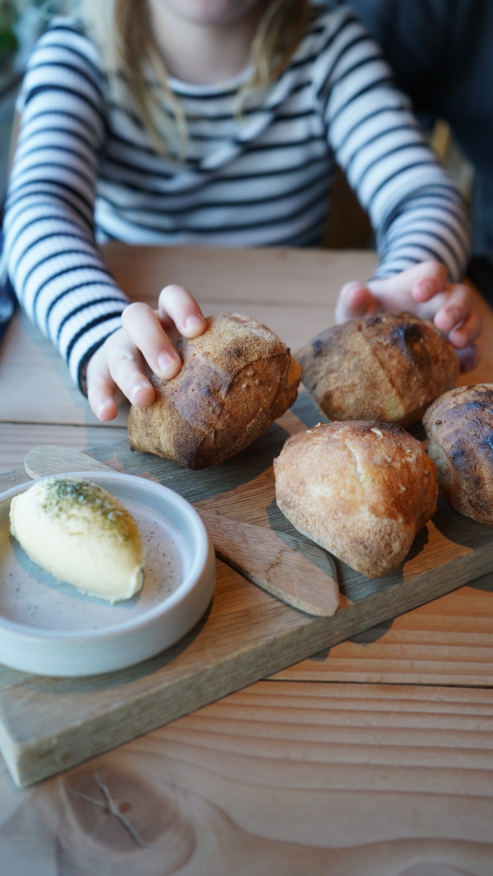 - frisch gebackenes Sauerteigbrot mit geschlagener Butter
