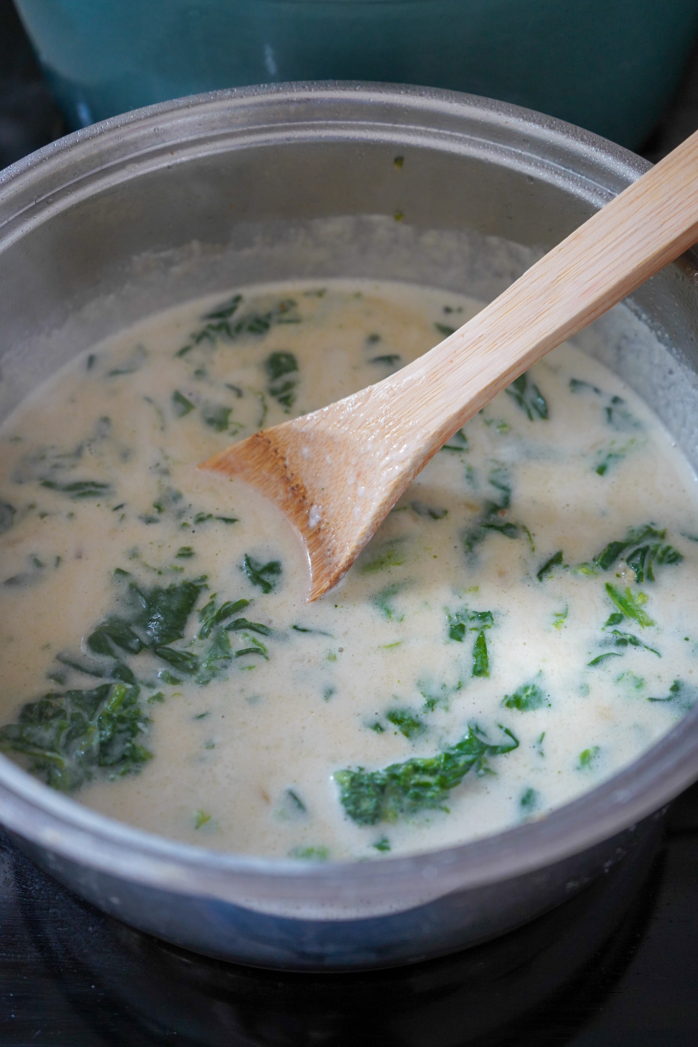 • 1 Becher TK Blattspinat (oder frisch, dann aber mehr)