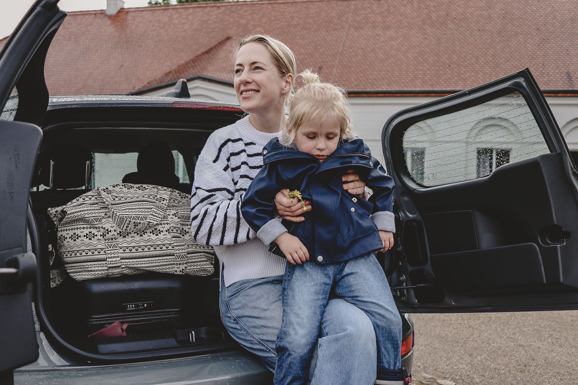 Danach haben wir zuhause das Auto für unseren Kurztrip gepackt: Koffer, Taschen, Kleidersäcke, Schuhe, Roller, Kinderwagen, Bücher, Spielzeug und Proviant – bei uns kommt schnell ein Berg von Gepäck zusammen, der gut verstaut werden muss, aber in den MINI Clubman passt jede Menge rein, sodass kein Stress aufkam.
