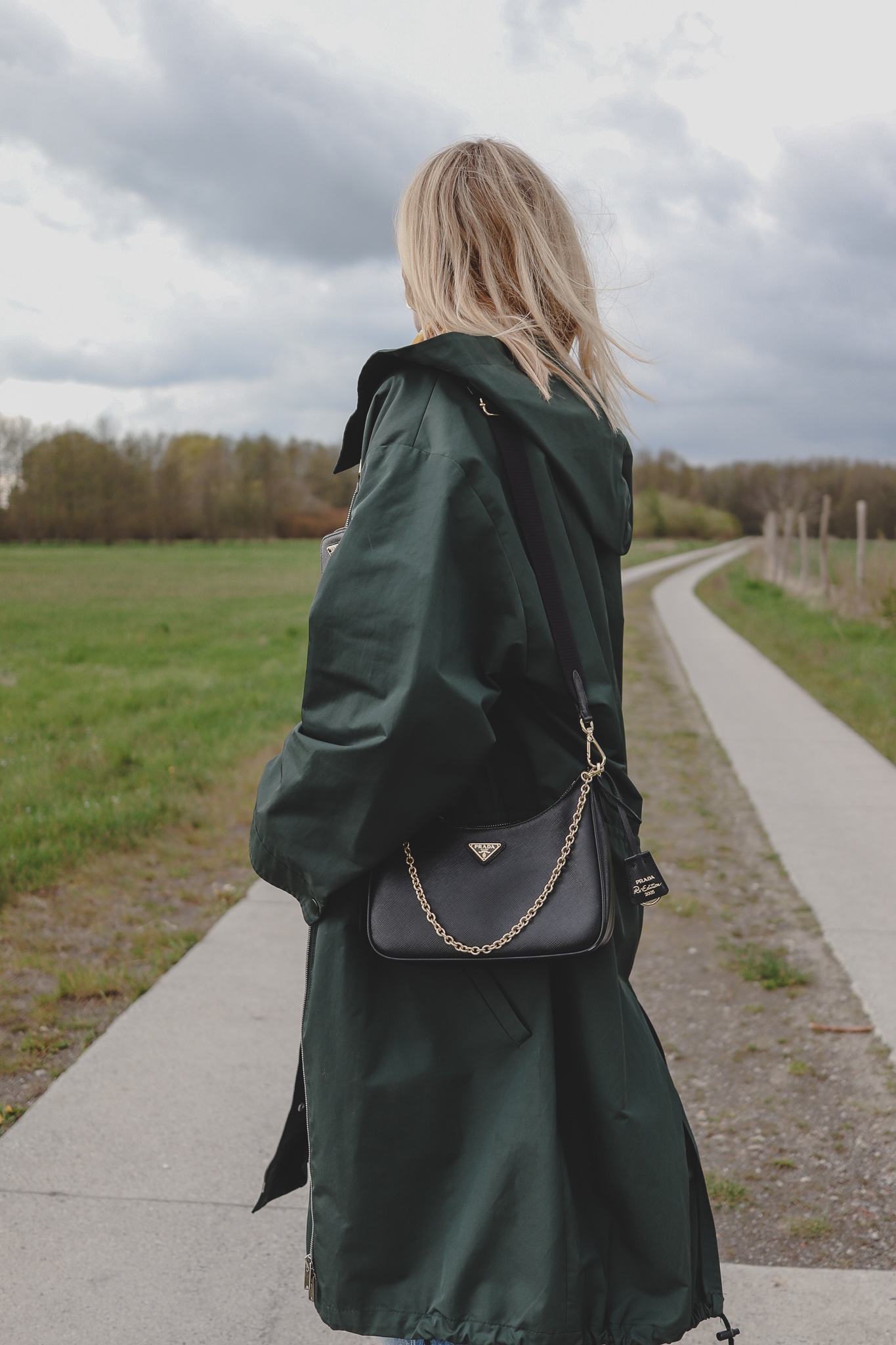 Mein zweiter Favorit ist die Bottega Veneta Padded Bag, wegen der knalligen Farbe. Dieses Grün hat so gute Laune gemacht und war überraschend einfach zu kombinieren! Hätte ich das Abo nicht gehabt, hätte ich niemals diese Erfahrung gemacht. Insofern finde ich super, dass man im Rahmen des Abos die Taschen eine Weile Probe tragen kann. Was ich so auch festgestellt habe: In die Bottega passt kaum etwas rein. Anders als in das Platzwunder von Gucci.