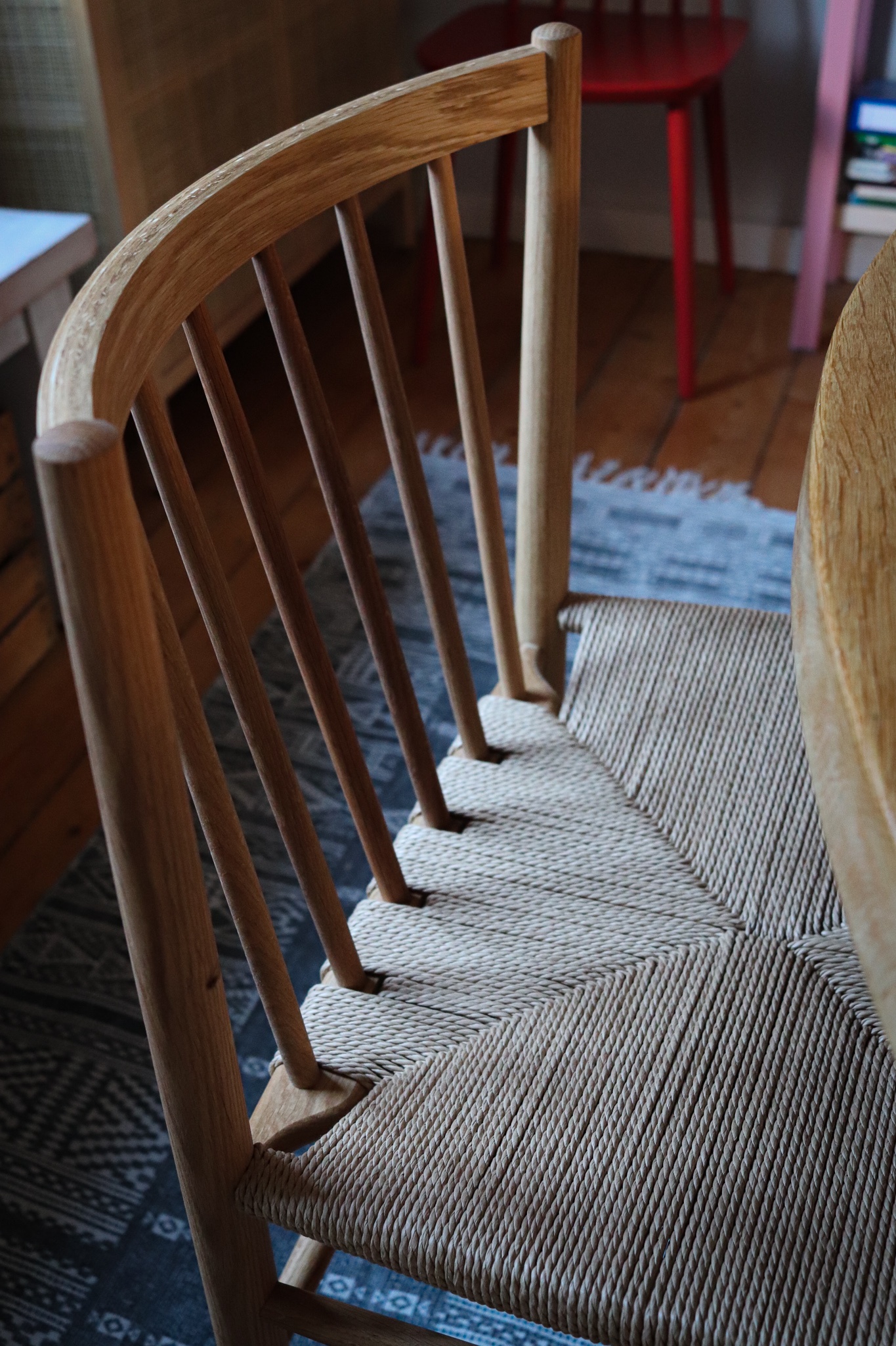Lange habe ich mit den Vintage-Schätzen von Another June geliebäugelt, etwa rote oder grüne Stühle. Dann ergab sich die Möglichkeit den J80 Chair von FDB Mobler in Eiche Natur zu bekommen. Für mich war es Liebe auf den ersten Blick. Nicht nur, was den Stuhl, sondern die gesamte Marke betrifft.