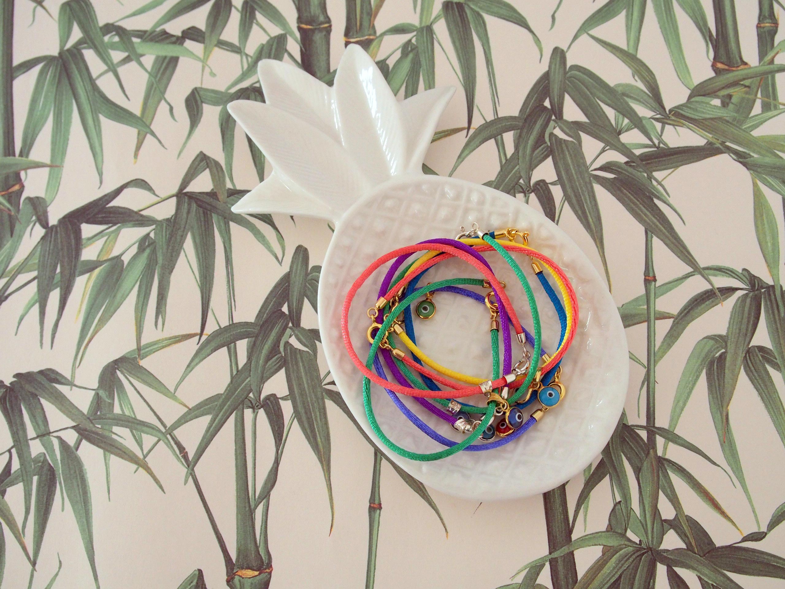 Jetzt ist die Muse wieder da und zerrt energisch an meinem Hosenbein. Das Ergebnis sah letzte Woche so aus: jede Menge Evil Eye Armbänder, denn meine Tante war im Gegensatz zu mir in Griechenland und hat Nachschub mitgebracht.