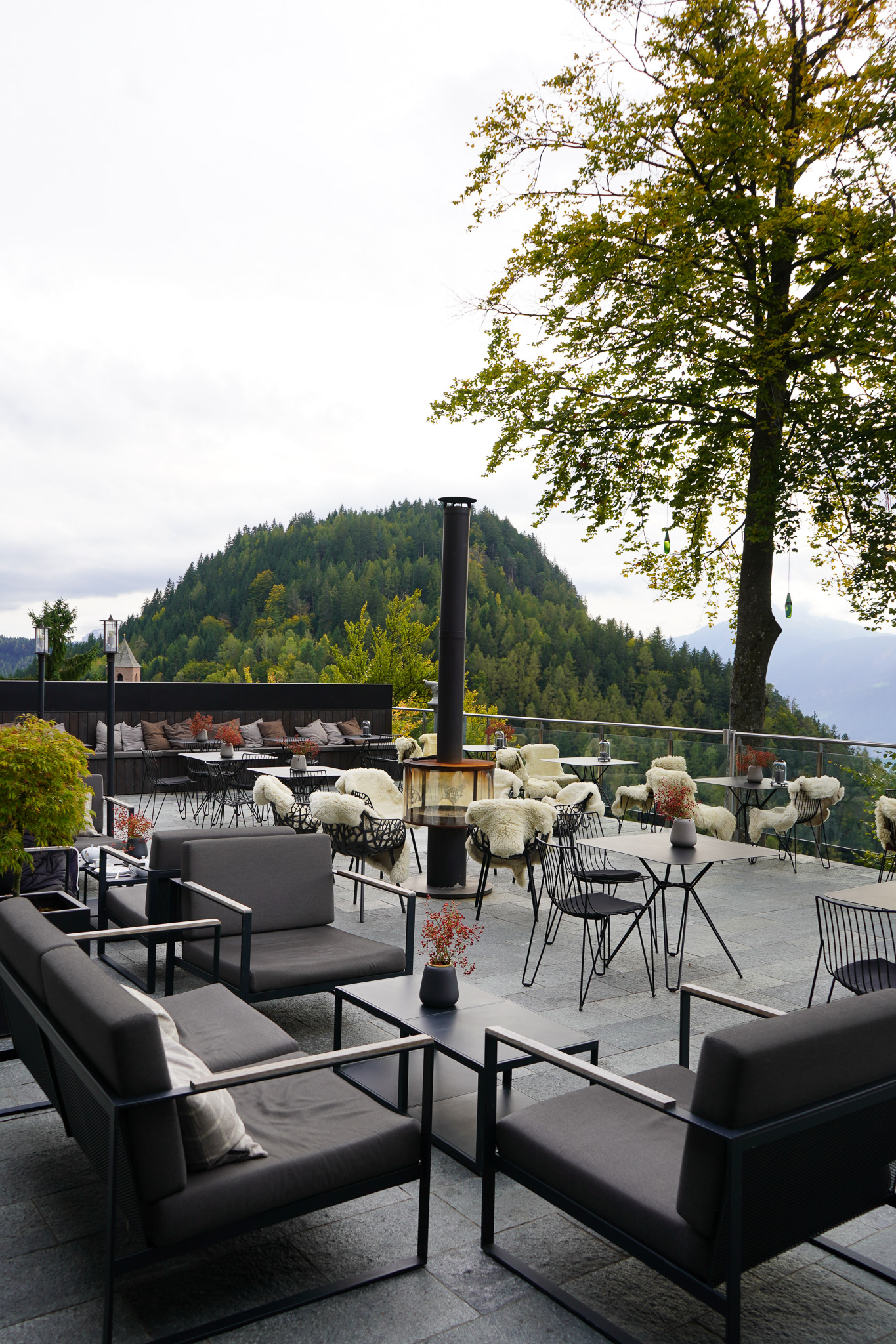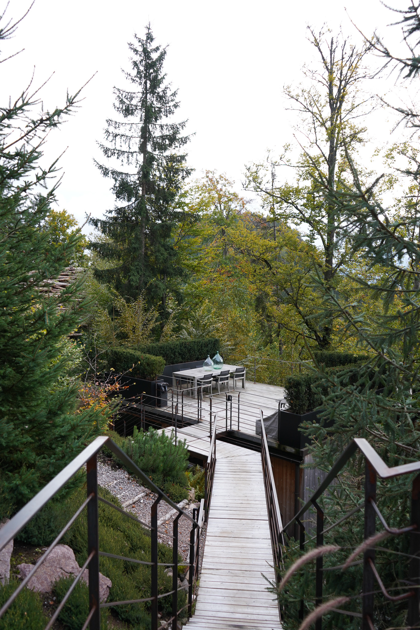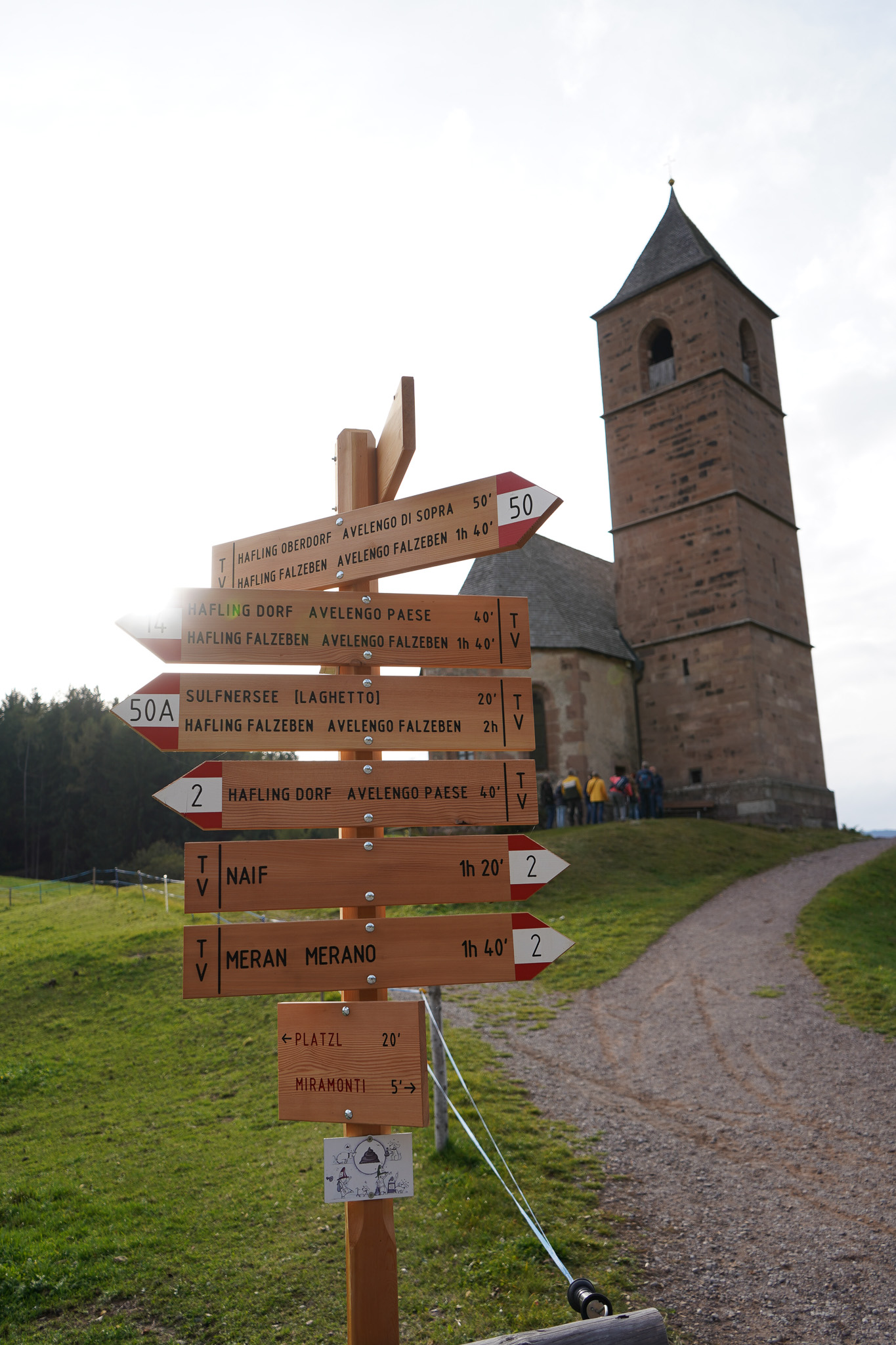 Oberhalb liegt die St. Kathrein Kirche mit einem Wahnsinnsblick runter ins Tal. Wer auf der Suche nach einer wildromantischen Hochzeitslocation mit einem fussläufig erreichbarem Luxushotel ist: Hafling ist der richtige Ort, denn auch das weltberühmte Miramonti Hotel liegt gleich gegenüber. Hier haben wir nach der Wanderung einen Kaffee und eine Marende genossen. Das ist eine Südtiroler Brotzeit, die ab 16 Uhr gegessen wird. Traditionsgemäß besteht sie aus Speck, Schüttelbrot, Kaminwurz und Almkäse.