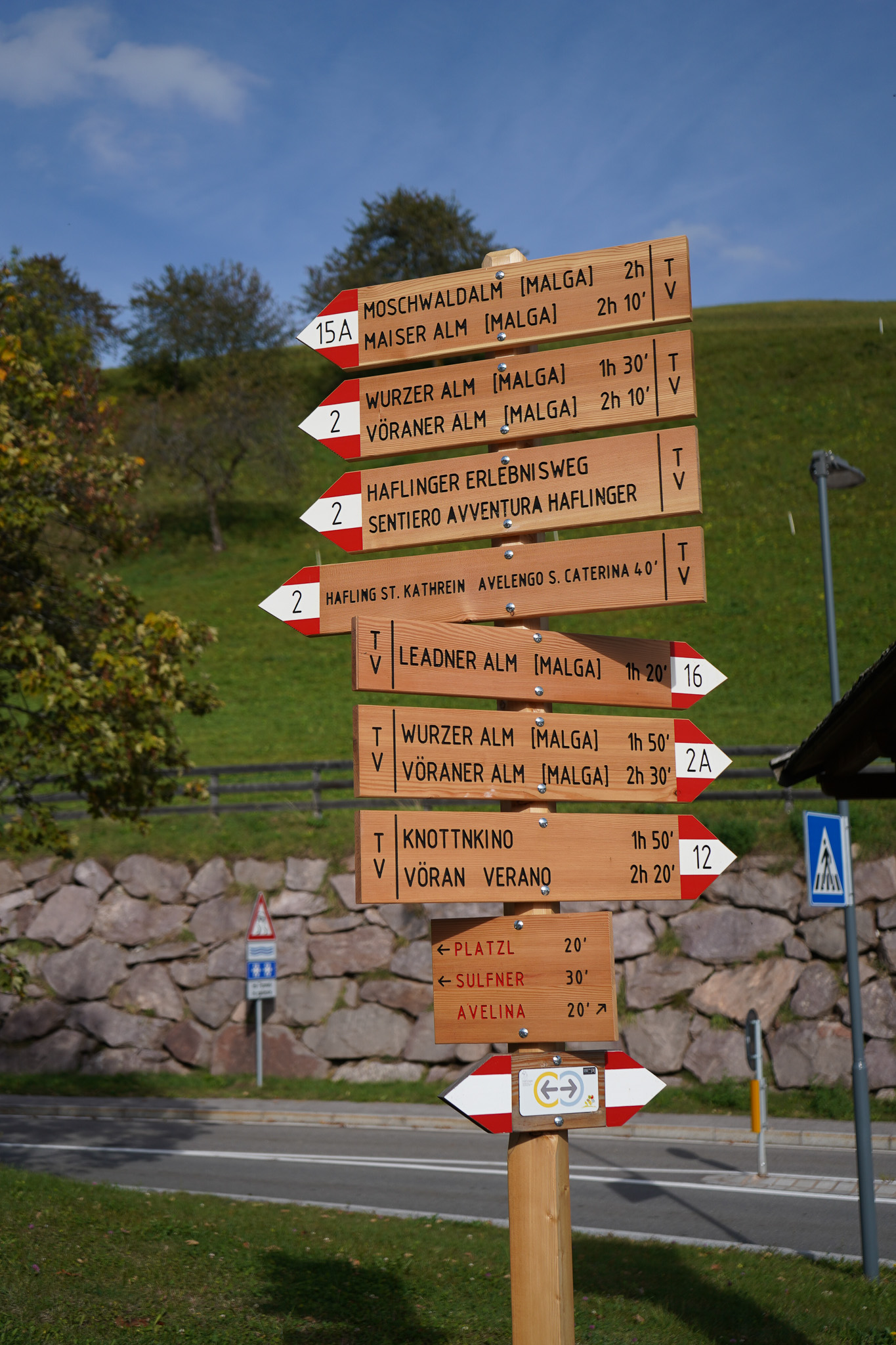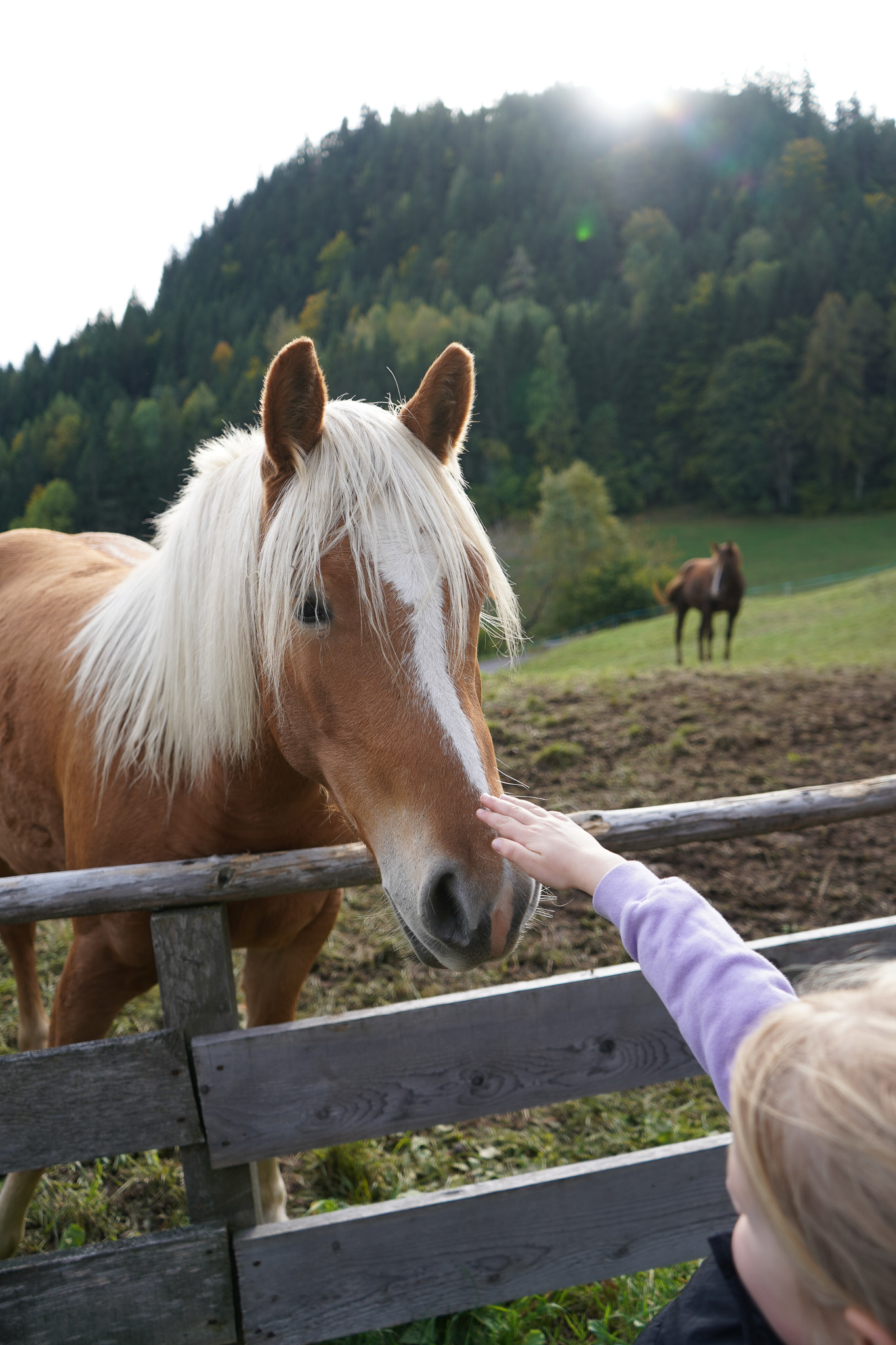 WERBUNG – PRESSREISE | Nicht nur, dass mir die Berge gefallen – ich bin auch auf den Geschmack von Wanderungen gekommen. Nachdem wir in Meran den Tappeinerweg gelaufen sind, war der Haflinger Erlebnisweg die nächste Etappe. Begleitet wurden wir von unserer Reiseführerin Nina. Die Strecke steht im Zeichen des berühmten Pferdes mit der blonden Mähne, das ursprünglich aus Südtirol stammt. Als Kind war ich mit meiner Schwester oft in den Ferien auf einem Reiterhof mit Haflingern, insofern war dieser Ausflug für große und kleine Pferdemädchen ein Highlight.