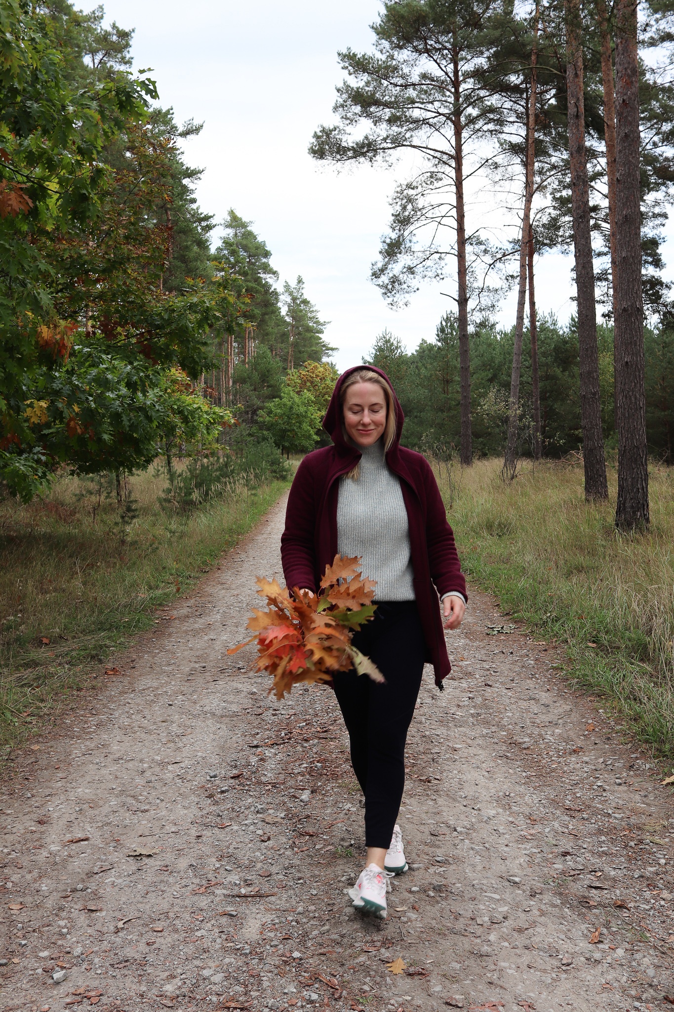 Am Wochenende sind wir gerne zusammen im Wald unterwegs, wo wir nicht nur wandern, Pilze, Eicheln und bunte Blätter suchen, sondern eine Tüte dabei haben und Plastikmüll einsammeln. Wir sensibilisieren damit unser Kind, damit es den Zusammenhang zwischen Müll und Natur und seine Verantwortung begreift. Es ist traurig zu sehen, dass der Wald für viele eine Mülldeponie ist. Wir tragen dazu bei, dass Plastik recycelt werden kann – wenn dabei eine neue Kleidung herauskommt, ist das eine Win-win-Situation für Mensch und Natur.