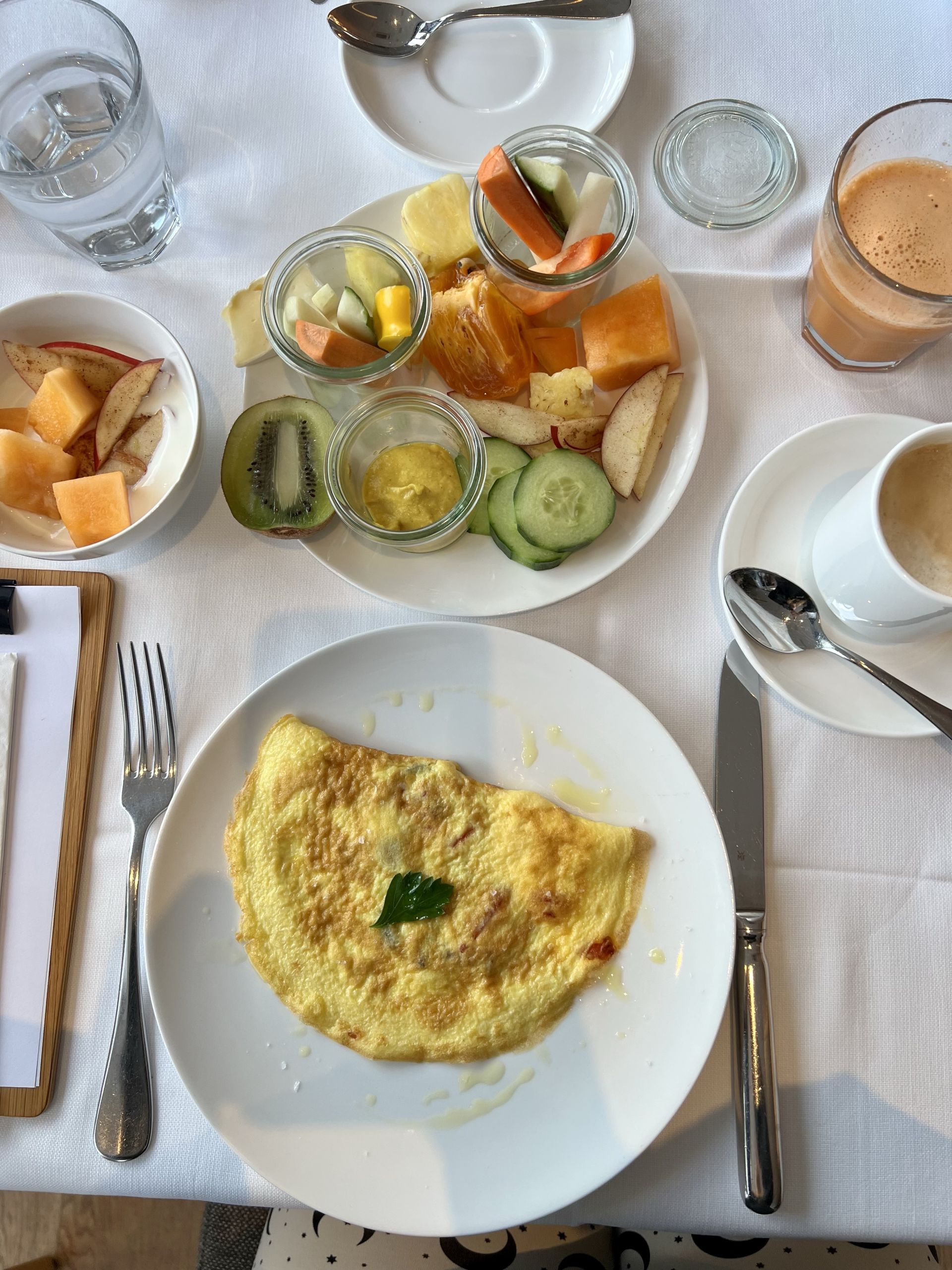 Das anschließende Frühstück war frisch und abwechslungsreich. Für mich sind die Eierspeisen à la carte wichtig, also Rührei, Omelette oder pochierte Eier, die im Schwarzschmied gourmetmäßig mit Kartoffelschaum und Kresse serviert werden. Ich habe gleich drei hintereinander bestellt. Hier seht ihr ein paar Eindrücke: