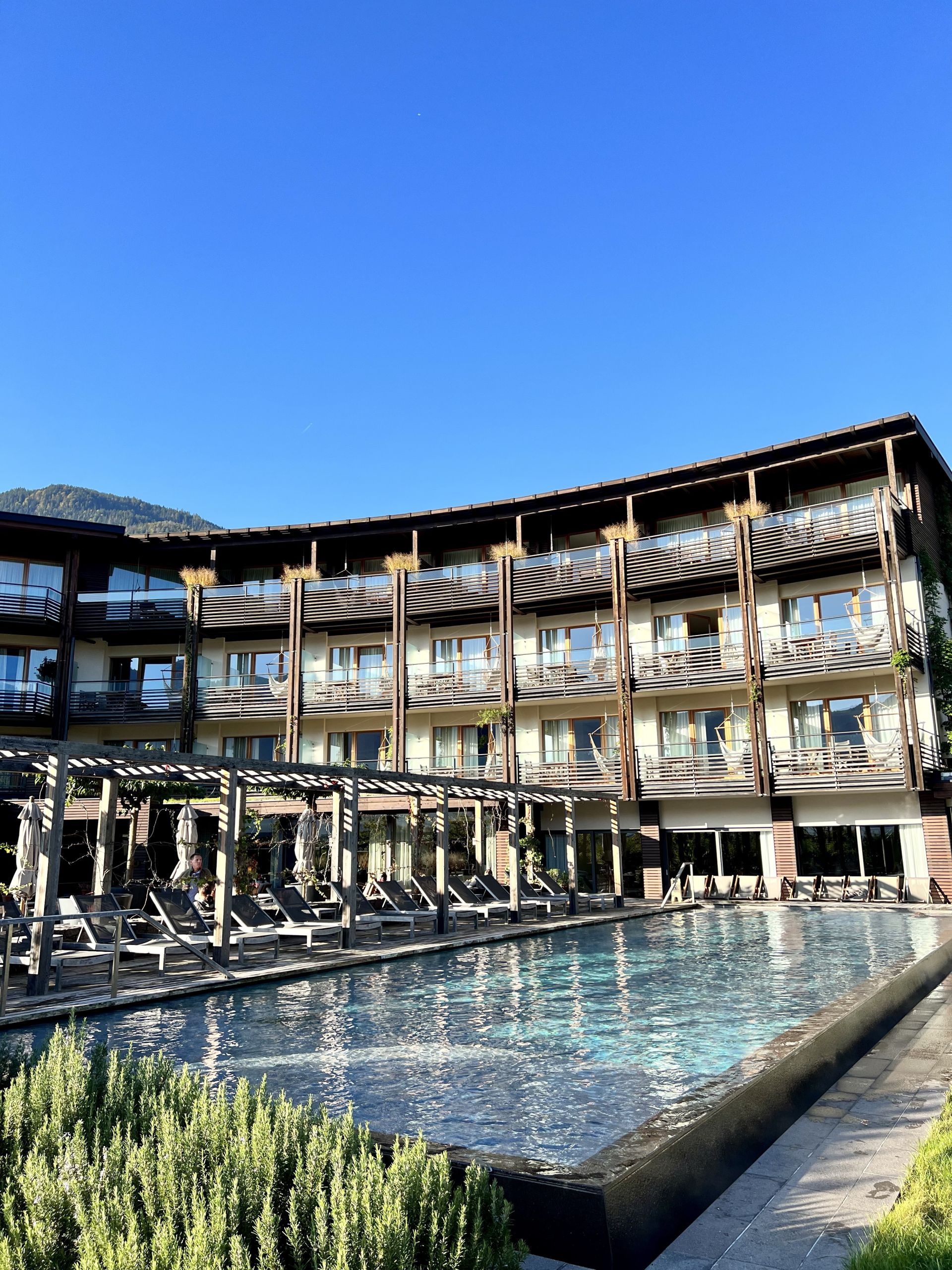 Vor dem Urlaub in Südtirol stand ich kurz vor einem Herzkasper, am Ende fand ich mein Lachen wieder. Das lag auch an diesem Ort. Das Hotel Schwarzschmied liegt mitten in Lana, etwa 20 Minuten von Meran entfernt. Das familienfreundliche Haus bietet knapp 70 Zimmer, hat ein eigenes Restaurant und kleines Bistro, Fitness- und Yoga-Raum, Saunabereich ab 14 Jahren sowie einen Innen- und beheizten Außenpool mit Blick auf Weinstöcke und die Heilig-Kreuz-Kirche. Ein absolut einmaliges Setting!