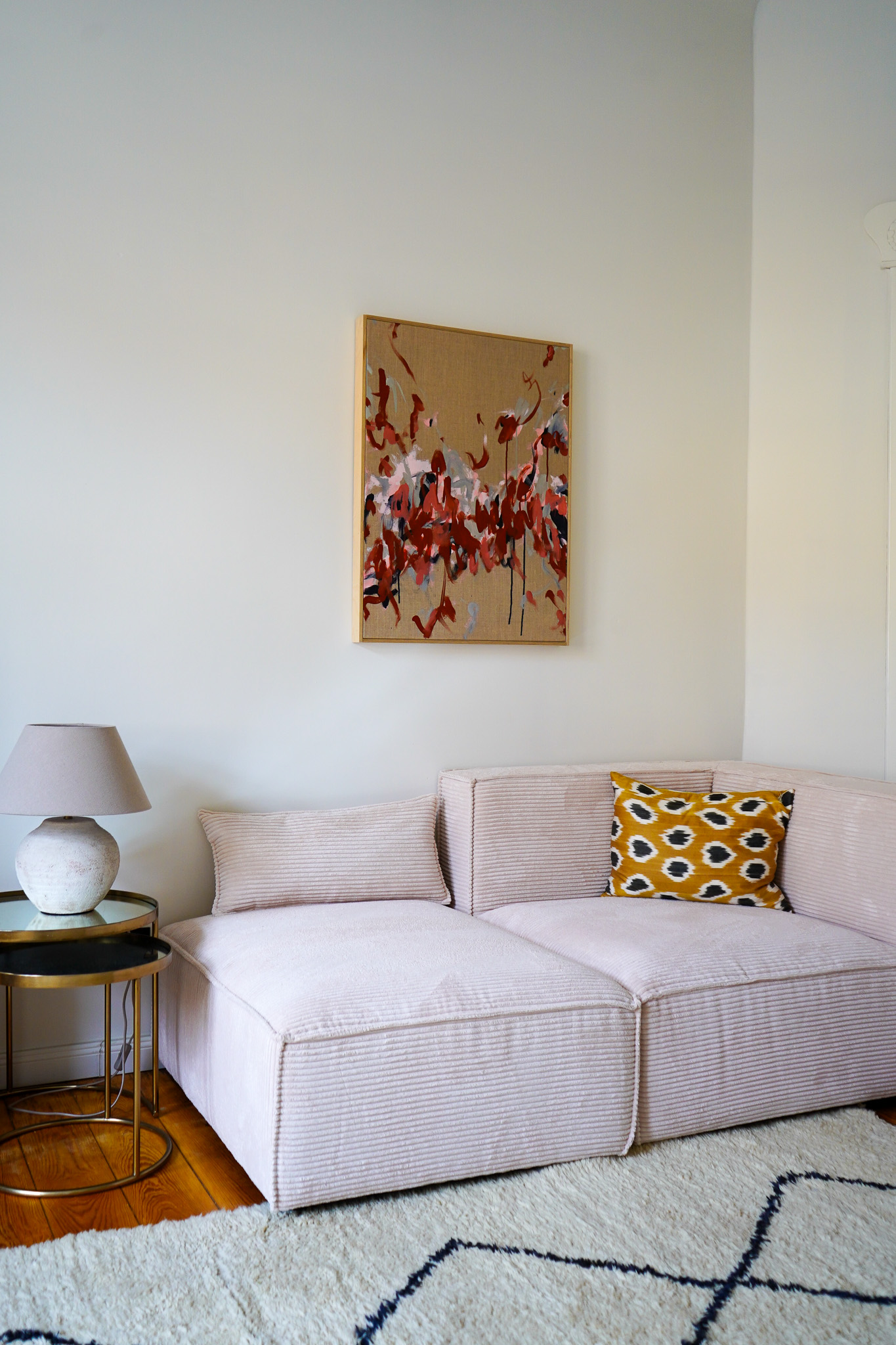 Kaum war die Küche drin, klingelte die Spedition und brachte unsere neue Cord-Couch. Wir haben uns für Kilhe von The Masie in der Farbe „Beige Seashell“ entschieden. Meine Eltern hatten früher auch eine Cord-Couch und für mich ist das ein schönes Design-Revival. Die Lehnen sind höher und fester als bei unserem Vorgänger-Sofa, das nach acht Jahren und zahllosen Jump-Sessions der Kinder in Rente gehen darf, genauer gesagt, über Kleinanzeigen eine neue Besitzerin gefunden hat. Meine Mutter konnte auf dem Sofa gar nicht gut sitzen, deshalb haben wir jetzt eine Sitzmöglichkeit geschaffen, die hoffentlich für Jung und Alt funktioniert. Ich habe das Sofa mit einem Textilspray imprägniert. Essen ist trotzdem strengstens verboten!