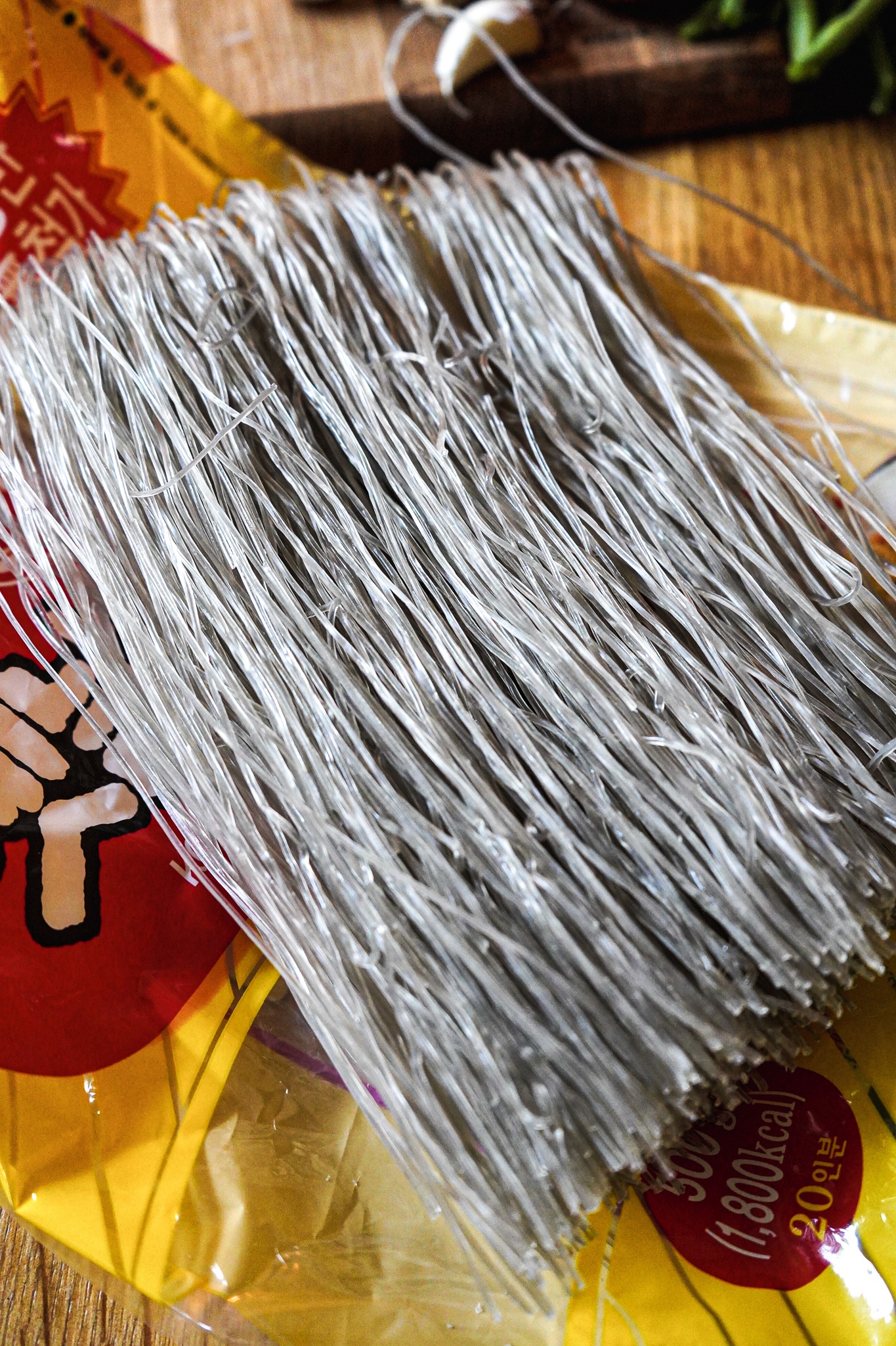 - Glasnudeln aus Süßkartoffelstärke (halbe Packung reicht meistens)