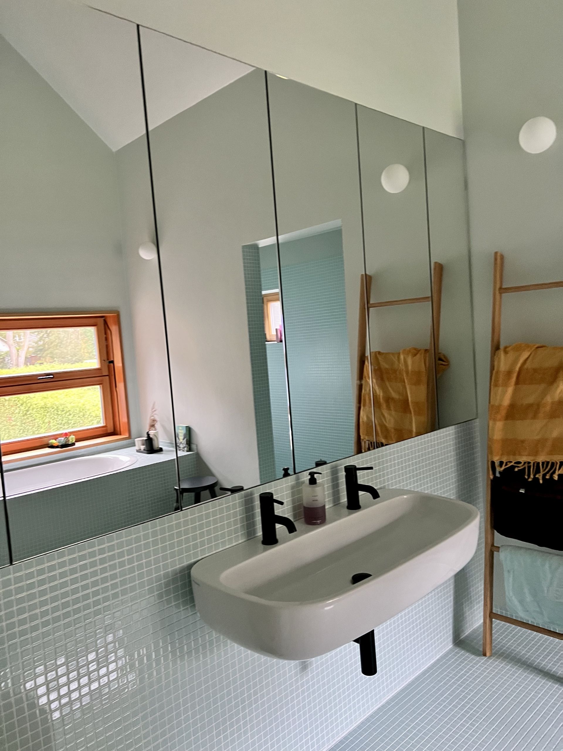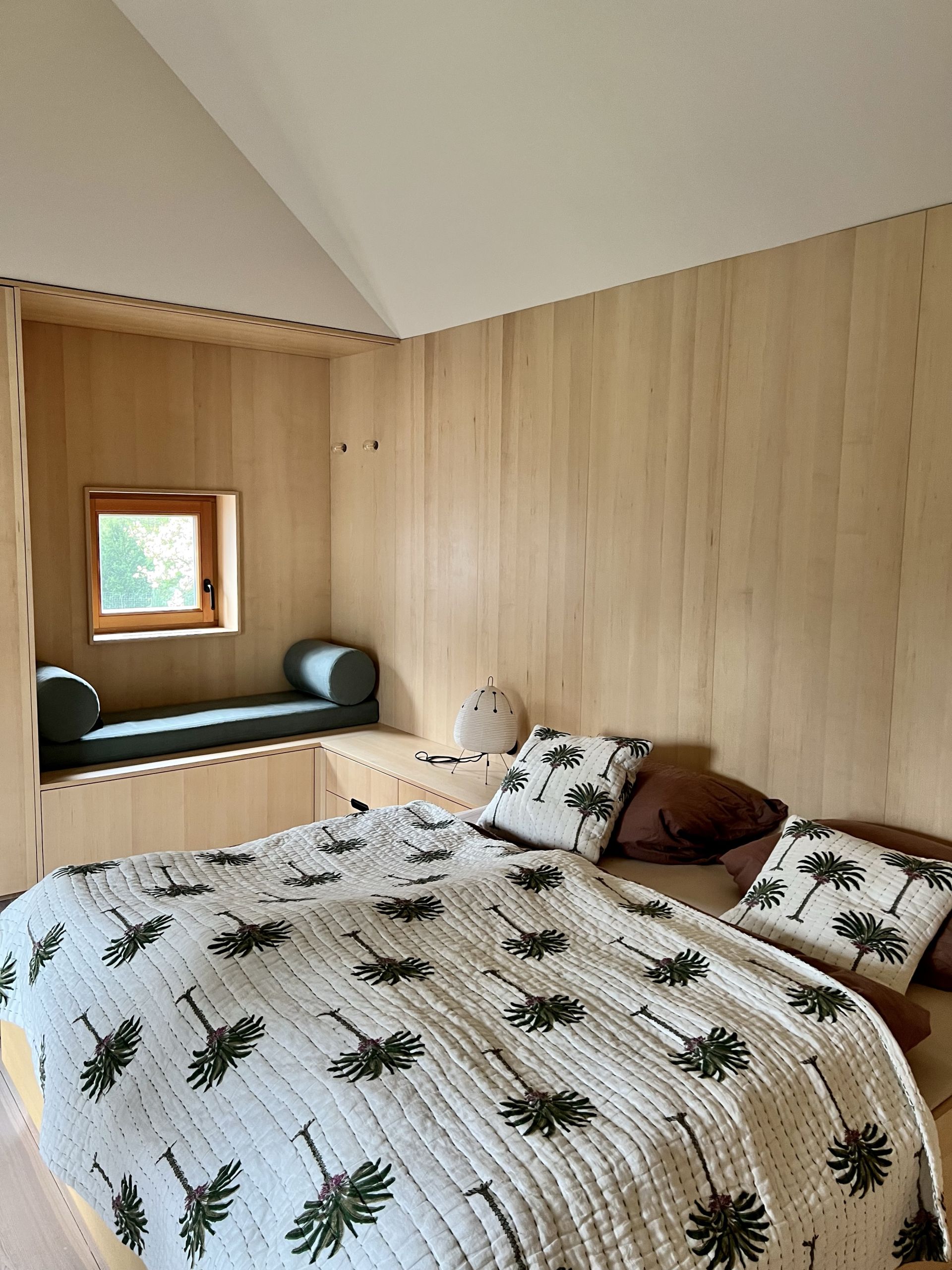Die Architekten Thomas Kröger und Lukas König haben mit Das schwarze Haus in der Uckermarck („Die Hamptons von Berlin“) die stilprägende Vision für das neue Landleben der Berliner*innen und Brandenburger*innen entworfen. Sie waren auch für den Bau von The Lubowsee verantwortlich. Ich nenne den Stil liebevoll: „Berghain goes Countryside“ und mag dieses rotzfreche: „Wir machen einfach alles schwarz“. Zumindest außen. Sogar die Dachziegel (aus Zink) sind schwarz. Erst neulich war DJ Peggy Gou am Lubowsee, um eine Beauty-Kampagne zu schießen. The Lubowsee kann für Shootings gemietet werden. Die großen Fensterfronten, hellen Böden aus Stein oder Holz machen es zu einer perfekten Kulisse.