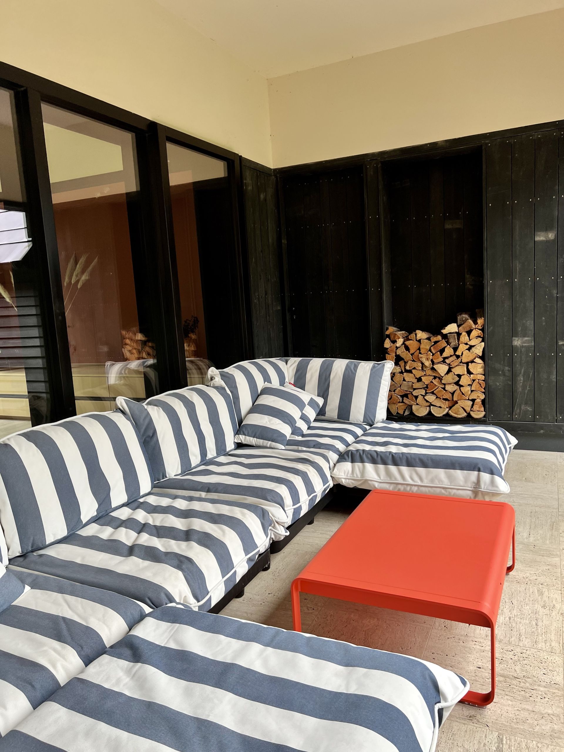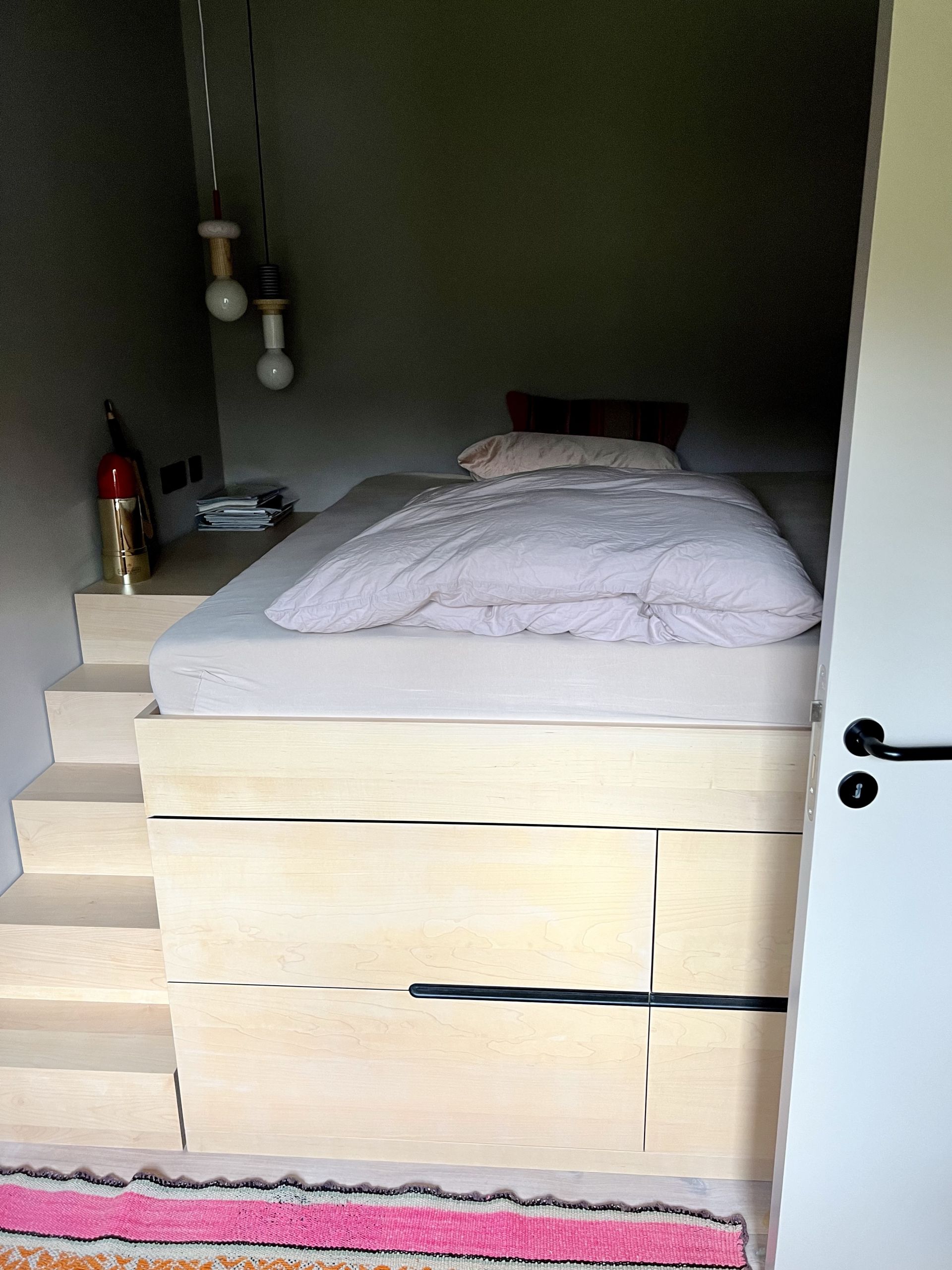 Ansonsten ist es der private Landsitz der Denks und die Familie kann es kaum erwarten, eines Tages ganz hier zu leben. Ich kann sie gut verstehen, zumal ich angesichts des perfekt geplanten Stauraums und der großzügigen Bäder einen Begeisterungsschrei losgelassen habe. Das Haus ist so viel mehr als eine perfekte Kulisse. Verknallt bin ich außerdem in die blau-weiß-gestreifte Outdoor-Liegelandschaft von Fatboy. Das i-Tüpfelchen ist der eigene Steg zum See, wo die Familie im Sommer angelt und badet. Große Lubow-Liebe! Brandenburg ist einfach schön, an vielen Ecken.