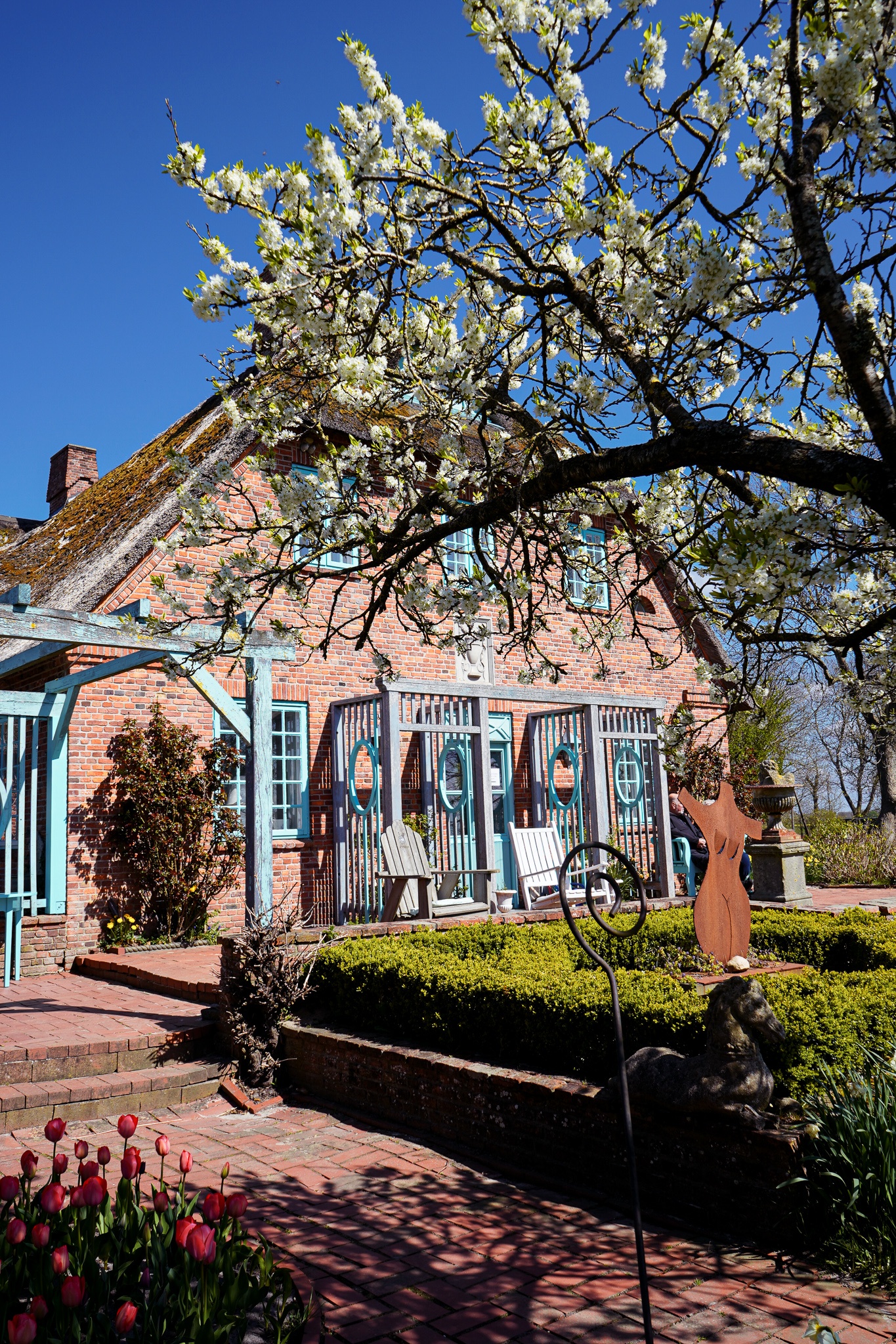 Das Event stand schon ewig auf meiner Bucket List, weil ich Frühblüher liebe und immer auf der Suche nach Inspiration für unseren Garten bin. Auf dem Weg nach Sylt haben wir spontan in Nordfriesland einen Zwischenstopp gemacht, denn der Autozug in Niebüll liegt nur zehn Minuten entfernt. Bei der Gelegenheit haben wir nicht nur meine liebe Kollegin Clara Moring von Tastesheriff und ihre Schwester Dunja Kirchner, die als Landschaftsgärtnerin für den prächtigen Blütenzauber verantwortlich ist, kennengelernt, sondern frisch gebackene Waffeln gegessen, Kaffee in der Sonne beim Spielplatz getrunken und den Mix & Match Schmuck von Carlchen B. aus Celle entdeckt.