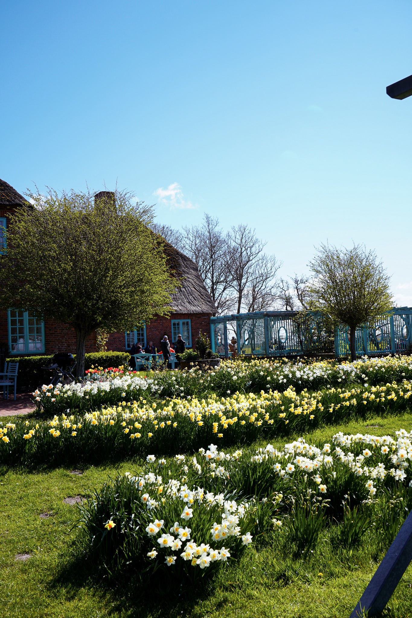 Woooow! Wie schön ist das denn, bitte? Das Narzissenfest in Hof Hilligenbohl ist in Wirklichkeit noch toller, als auf Instagram. Einmal im Jahr wird der Garten der Familie Kirchner an einem Wochenende für das Publikum geöffnet. Die Besucher*innen erleben das ohnehin atemberaubende Anwesen mit dem großen Reetdachhaus (allein diese Türen und Adirondack-Stühle in Tiffany-Blau!) dann in voller Blüte.