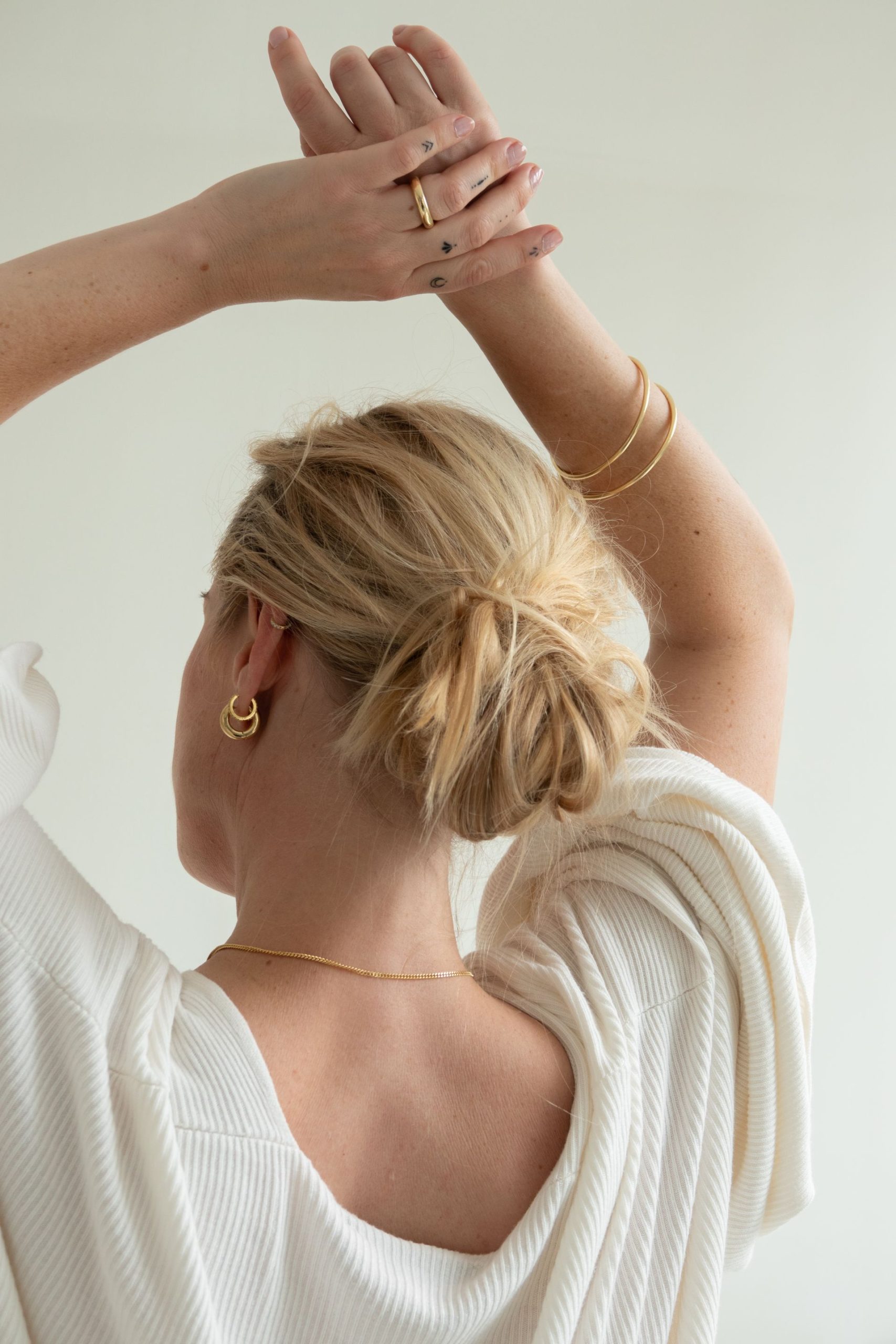 Warum Armreifen und Ketten mit grünen Steinen? Ketten sind zeitlos und immer elegant. Mit Armreifen kann man schnell und mühelos einen Look aufwerten, ohne dass der Schmuck zu sehr vom Rest ablenkt. Ich mag, dass die Haltung damit anders wird. Schon meine Großmutter hat am liebsten Armreifen getragen und in meiner Familie bekommt jede Frau zu der Geburt eines Kindes einen Armreif geschenkt.