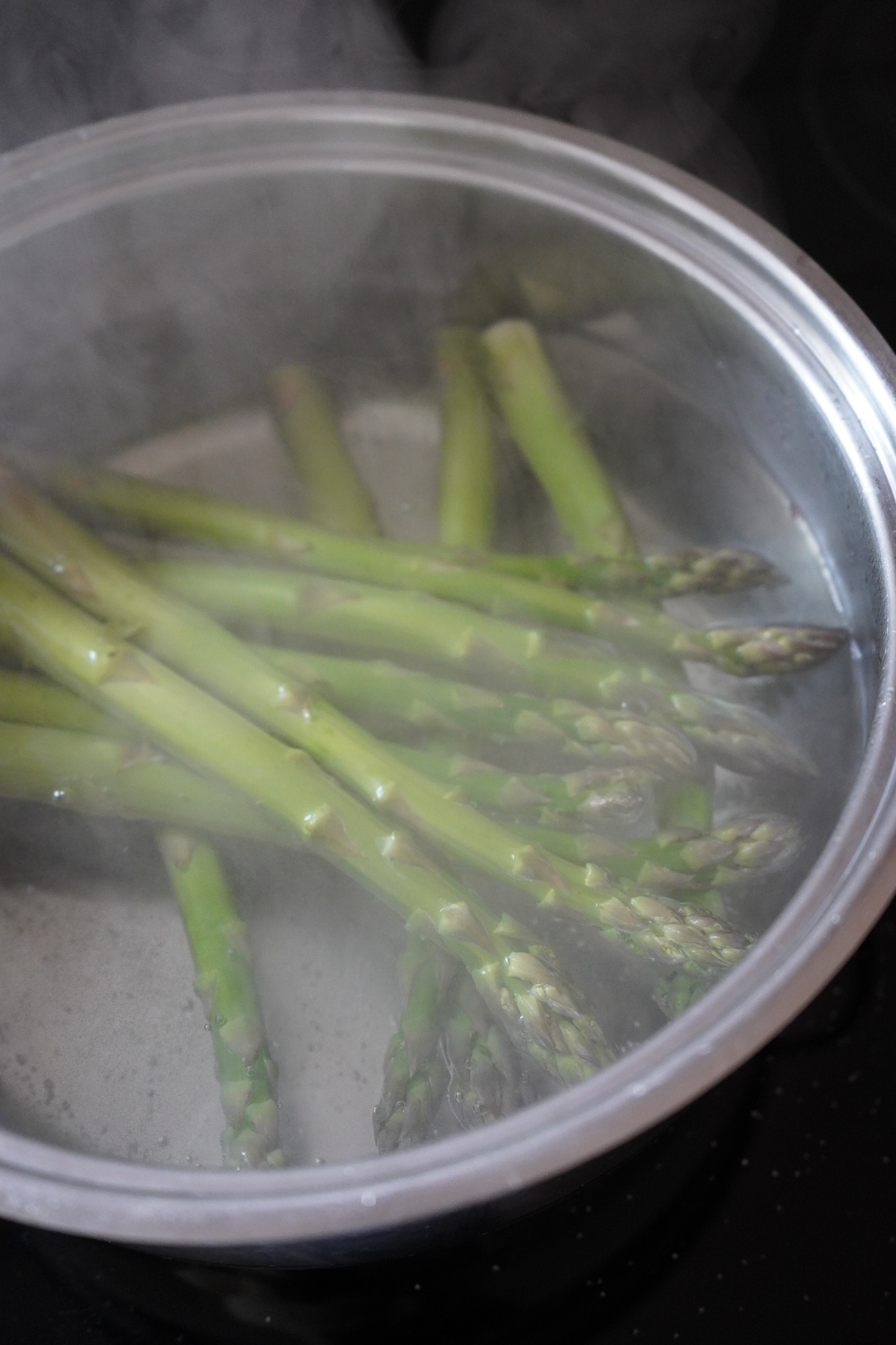 Spargel-Enden mit einem großen Messer kappen. Die Stangen in Salzwasser ca. 7 Minuten garen. Kalt abschrecken. Beiseitestellen und auskühlen lassen. Quinoa ebenfalls in Salzwasser garen. Hitze ganz runterschalten und die Körner nur noch quellen lassen. Mais abtropfen lassen. Gurke, Blaubeeren, Tomaten und Möhren waschen. Die Blaubeeren und Tomaten quer halbieren (nicht längs, das sieht langweilig aus!), Spargel, Möhren und Gurke in kleine Stücke schneiden.