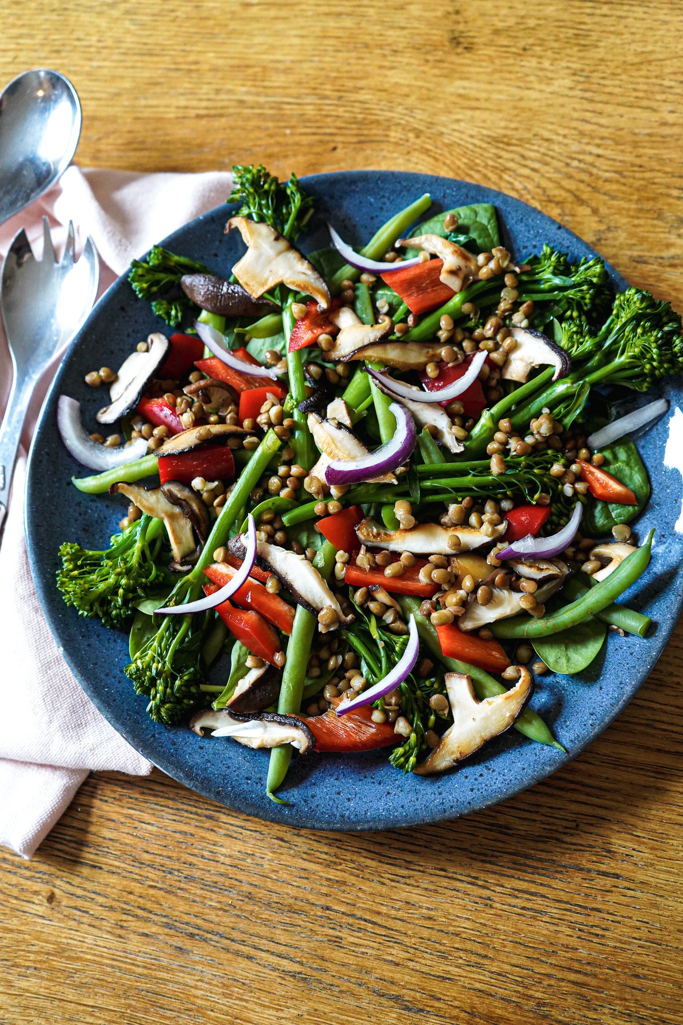 WERBUNG | Hiermit melde ich mich zurück in bzw. aus der Küche! Zwei Wochen ging wegen Corona gar nichts. Natürlich haben wir auch in der Quarantäne darauf geachtet, uns besonders gesund zu ernähren. Ich bin überzeugt, dass wir u.a. deshalb relativ schnell wieder auf die Beine gekommen sind. Eines meiner Highlight-Rezepte in dieser Zeit war der schöne Salat mit wildem Brokkoli, Shiitake-Pilzen und einem Tahin-Dressing. Inspiriert wurde ich dabei von Jasmine Hemsley und Melissa Hemsley und ihrem Kochbuch The Art of Eating Well*. Allerdings verwenden die Schwestern oft Zutaten, von denen ich in Brandenburg nur träumen kann. Zum Beispiel leckere Algen oder ganzjährig grünen Spargel. Deshalb wandele ich ihre Rezepte gerne ab. Immerhin gab es bei unserem REWE Shiitake und das ist wirklich selten.