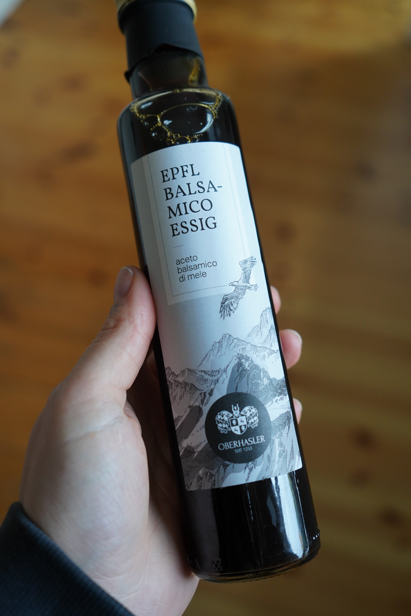 Ein Mitbringsel aus Südtirol: die Idee für diesen Salat und ein sensationeller Apfel-Balsamico-Essig vom Oberhaslerhof. Bei dem Begriff „Winzersalat“ habe ich gleich diesen Buschenschank im Kopf, in dem wir oberhalb von Tscherms zum Törggelen waren. Es war dort so idyllisch, der Talblick und die Tische unter der Weinreben-Laube – ich war echt hin und weg.