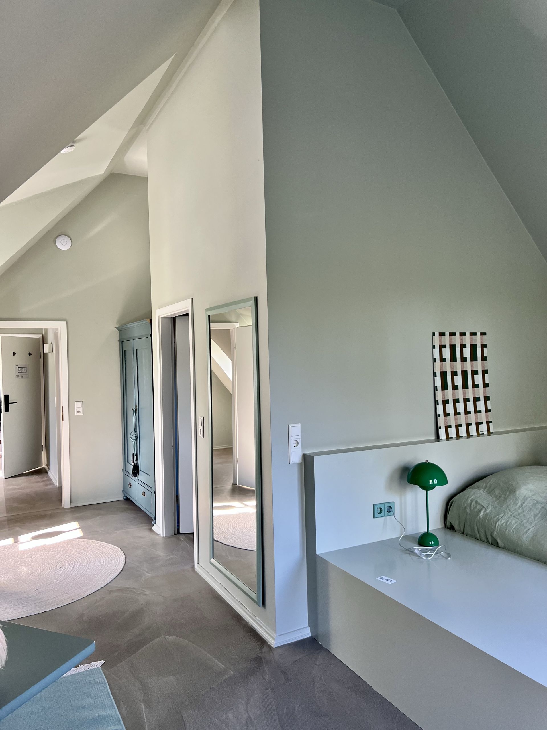 Wir durften eine Nacht in der Junior Suite übernachten, die von dem dänischen Architekten und Möbeldesigner Sigurd Larsen entworfen wurde. Die Suite unterm Dach bietet zwei Zimmer, eines davon mit einem großen Bettpodest und Blick in den lauschigen Garten. Für Long Stays und Selbstversorger gibt es im alten Schafstall nebenan acht Apartments für bis zu 4 Personen inklusive Küchenzeile, Balkon oder Terrasse.
