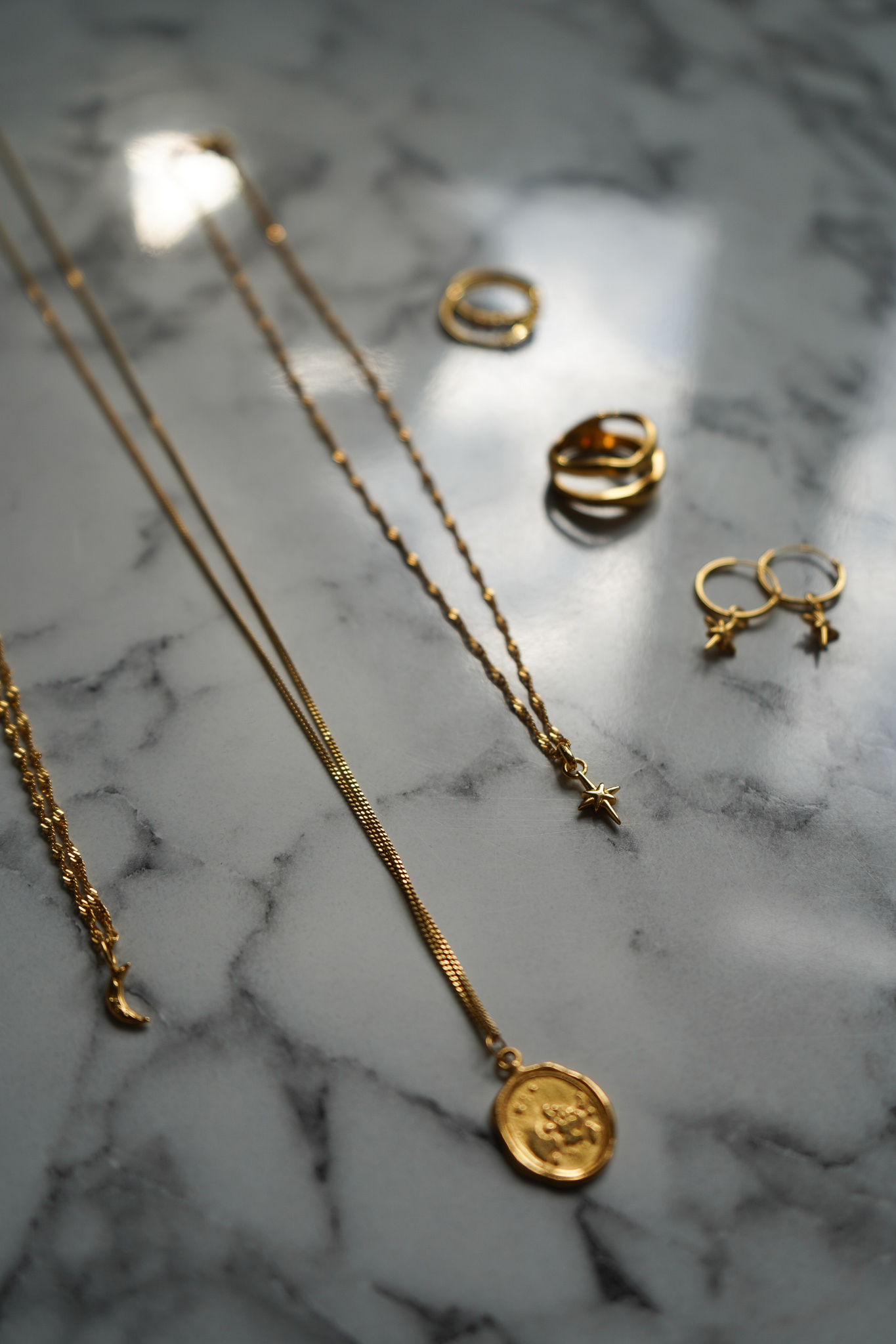 Das Mix & Match Prinzip funktioniert auch mit den anderen Stilnest-Schmuckstücken, die ich bereits besitze. Motive wie Stern oder Mond trage ich entweder am Ohr oder um den Hals.