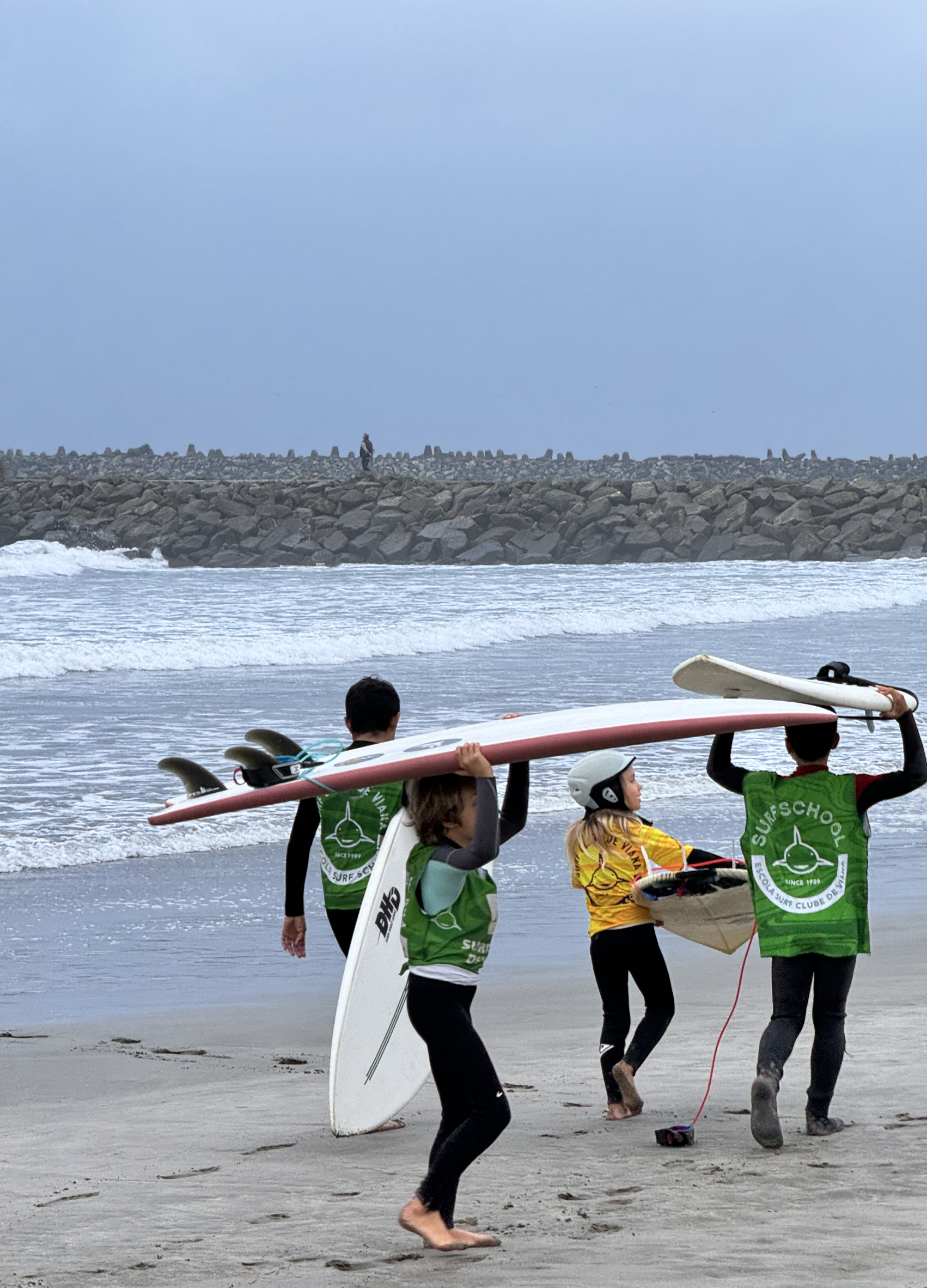 Die portugiesischen Kinder verbringen ihren Schulsport auf dem Brett und gehen abends nochmal kurz vor der Dämmerung ins Wasser, am liebsten bei tosenden Wellen. Wir waren schwer beeindruckt, vor allem von dem kleinen Mädchen, das mit Helm in die Fluten gehüpft ist.