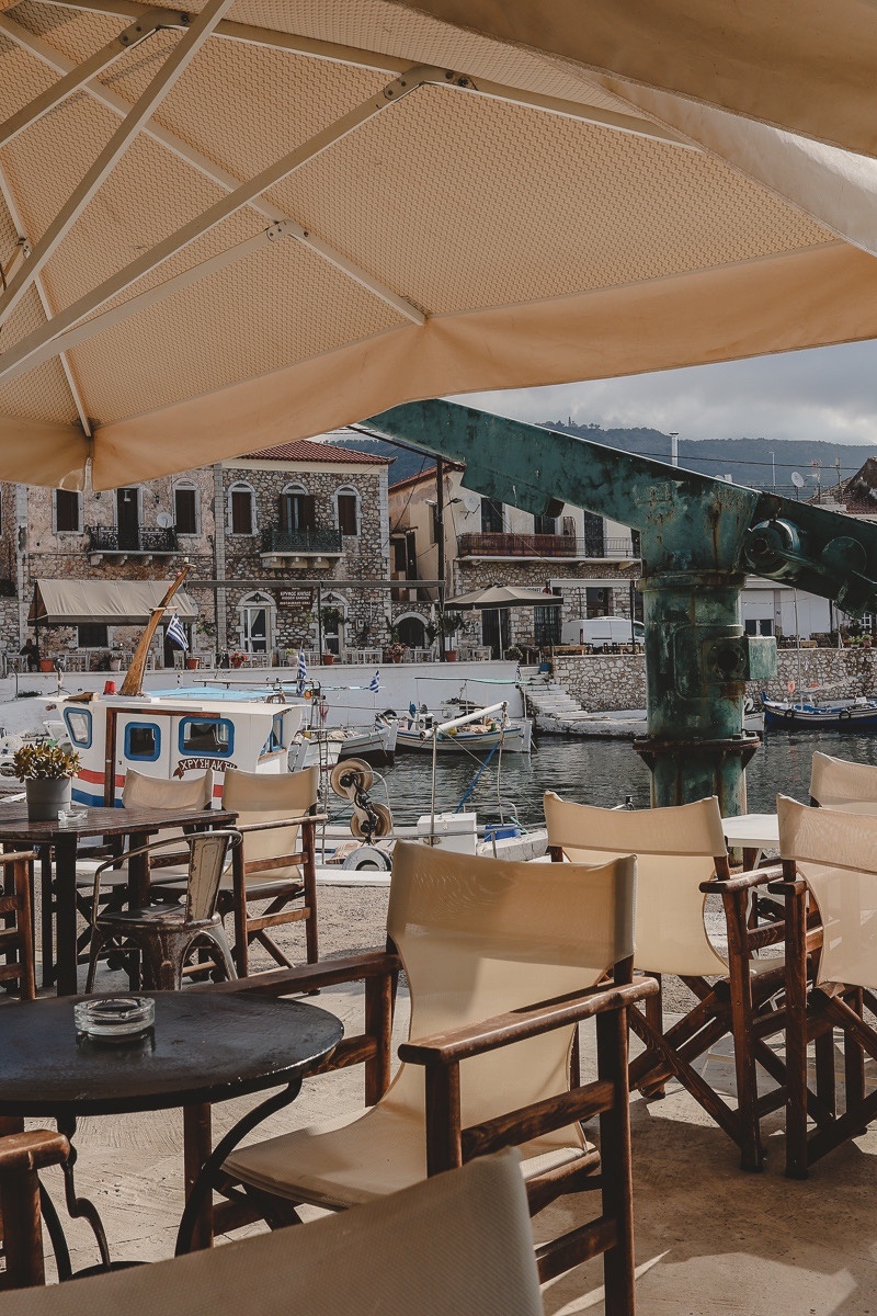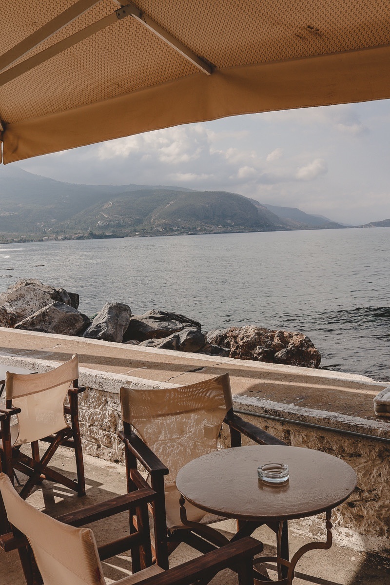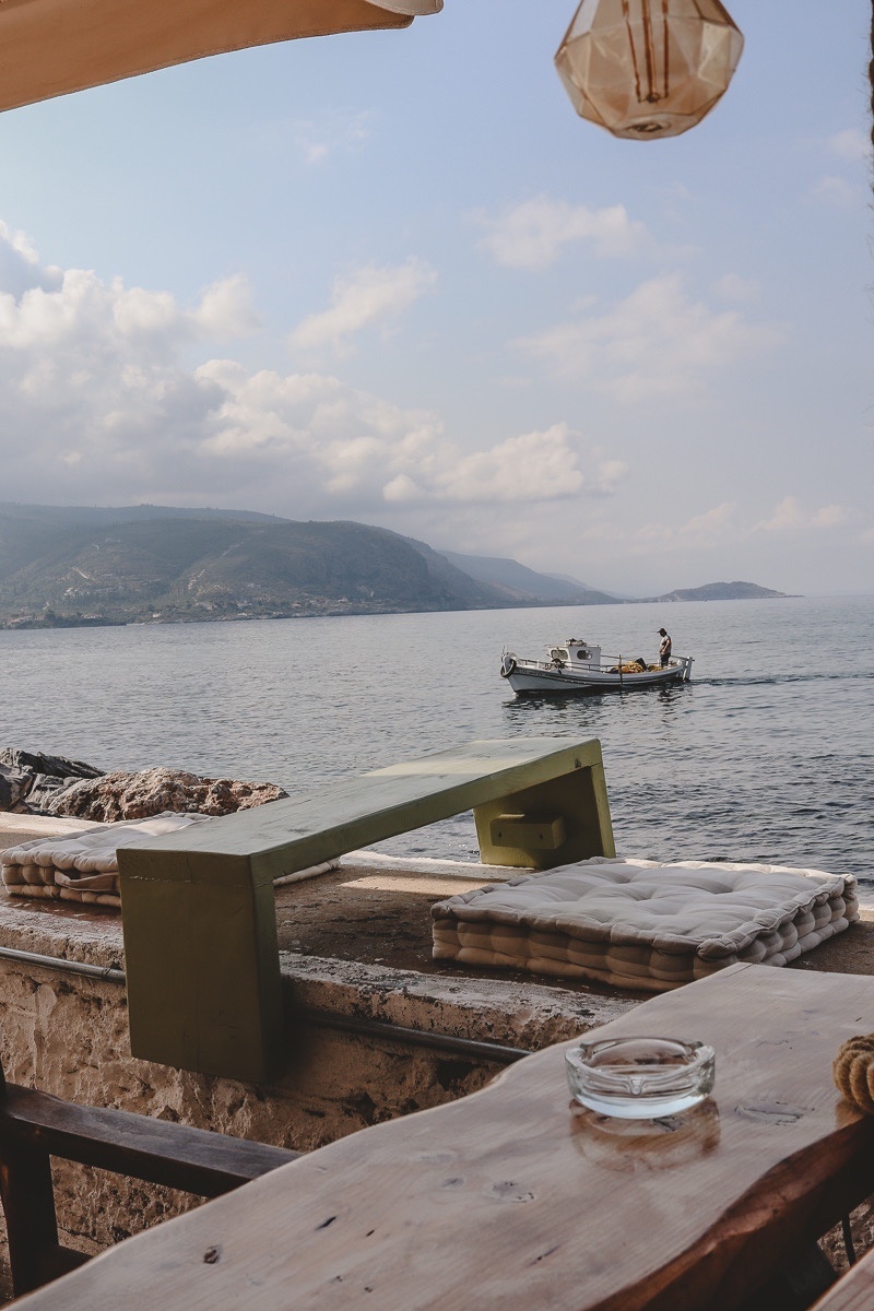 Die dreieinhalb Stunden bis in die Mani sind die letzte Etappe, die wir hinter uns bringen müssen. Kaum steigen wir in Stoupa aus, sind wir „da“ und entspannen. Eben, weil wir alles so gut kennen. Etwa das Lithos Café am Hafen von Agios Nikolaos, wo wir mindestens einmal frühstücken gehen.