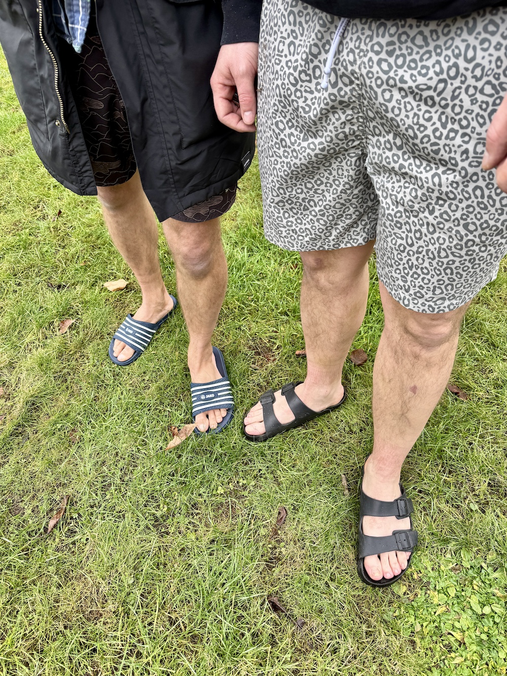 - Zügig ins Wasser gehen, dann hinhocken und die Muskulatur entspannen. Arme aus dem Wasser halten, Schultern nach unten ziehen. Wir hatten alle eine Mütze auf dem Kopf, viele trugen Neopren- und Handschuhe.