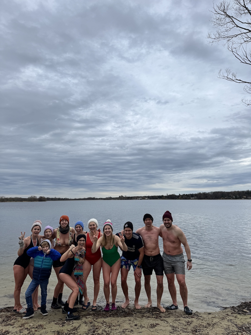 Und das Gefühl nach: Oh mein Gott, das war wirklich mindblowing. Auch wenn eine Krankheitswelle einen Teil der Gruppe ins Bett gezwungen hat, sind wir bei circa 5° Wassertemperatur 3 Minuten in den See gegangen. Die meisten waren ohne Eisbaden-Erfahrung, aber hatten Bock, etwas Neues zu erleben und die eigenen Grenzen auszutesten. Angefeuert wurden wir von Familie, Kindern und Freunden. Danach lagen uns alle in den Armen und haben uns an dem köstlichen Tee- und Suppenbuffet von Coco Catering gestärkt.